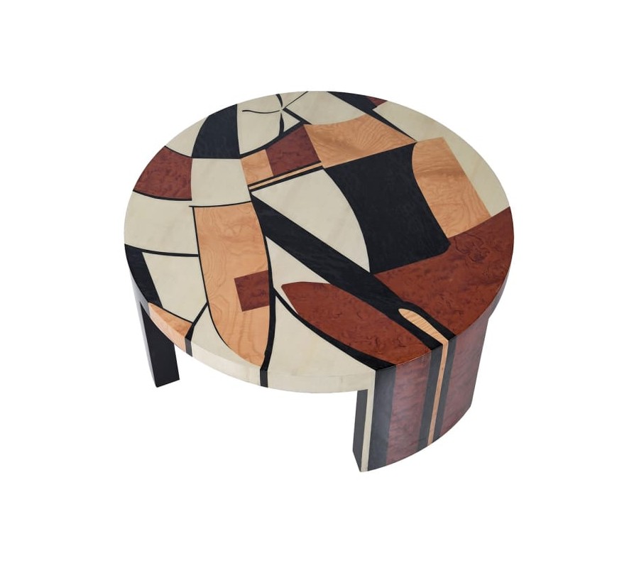 Art deco konferenčný stolík Jacobi s geometrickým kubistickým vzorom a tromi masívnymi nožičkami 89 cm