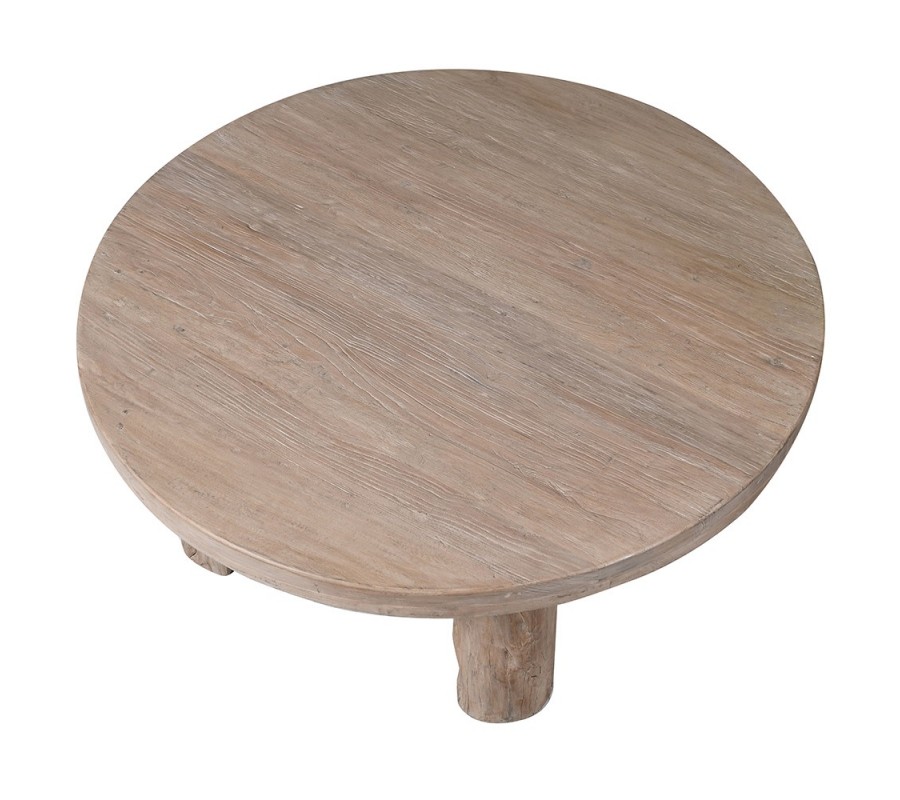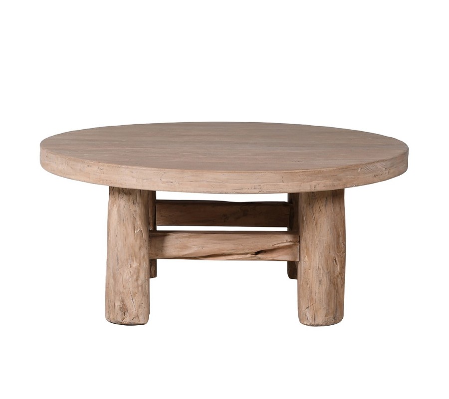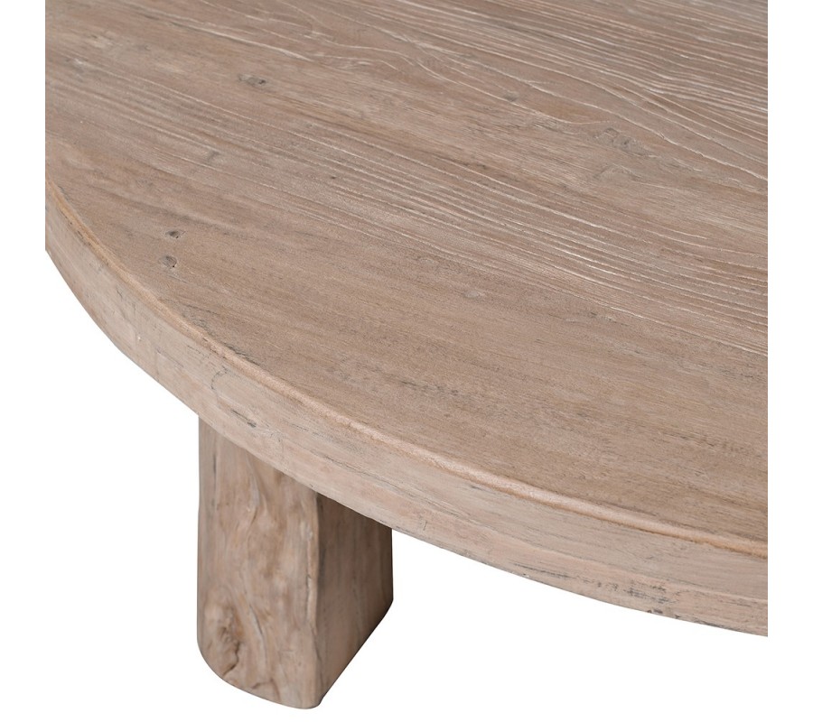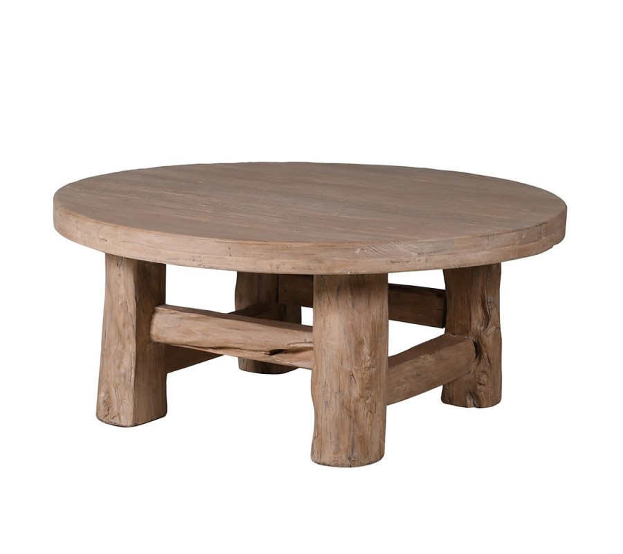 Luxusný vidiecky okrúhly konferenčný stolík Gail z prírodného hnedého recyklovaného dreva s mohutnými nohami 105 cm