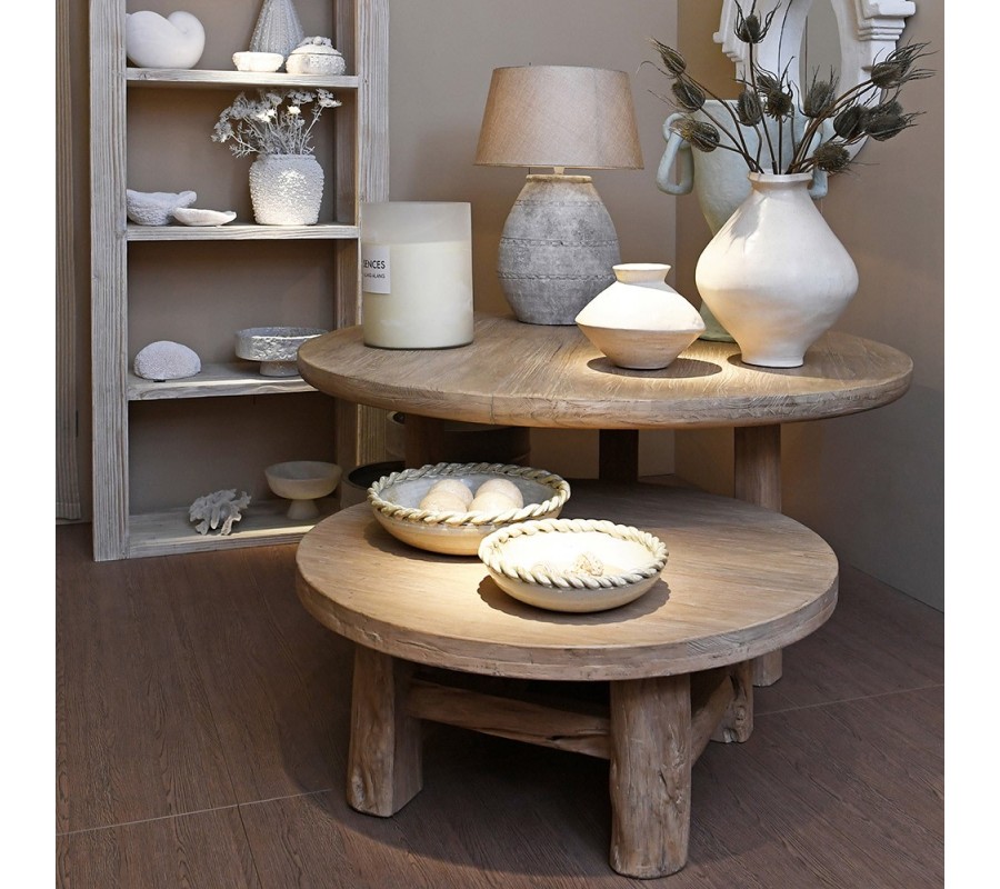 Konferenčný stolík Gail vás očarí svojím prírodným vizuálom s nádychom rustikálneho štýlu. Recyklované drevo dodáva každému kusu unikátny vintage charakter a do vašej obývačky prinesie organické teplo s dotykom luxusu.