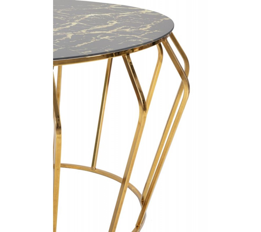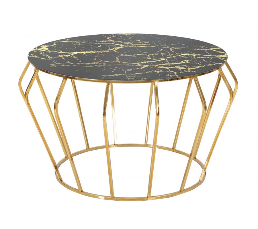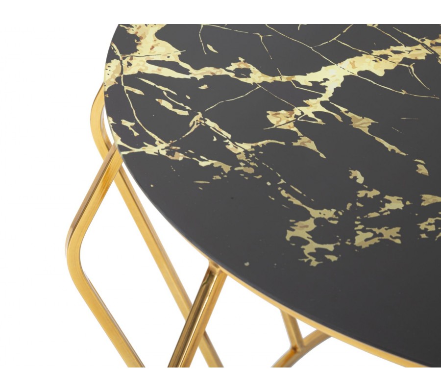Art deco okrúhly kovový zlatý konferenčný stolík Mino s vrchnou sklenenou doskou s čiernym mramorovým dizajnom 78 cm
