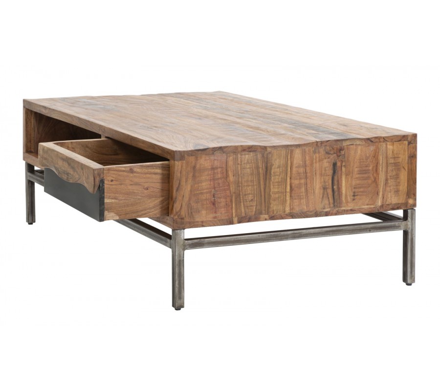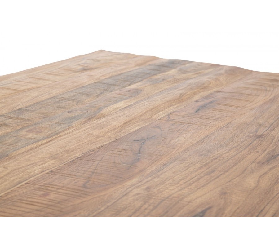 Industriálny obdĺžnikový konferenčný stolík Berignone z masívneho akáciového dreva je kombináciou robustnej konštrukcie a premysleného dizajnu. Svetlohnedý odtieň s výraznou štruktúrou dreva zvýrazňuje jeho prirodzenú krásu, zatiaľ čo kovové nožičky v surovom industriálnom prevedení dodávajú celku stabilitu a charakter.