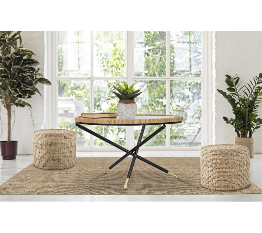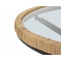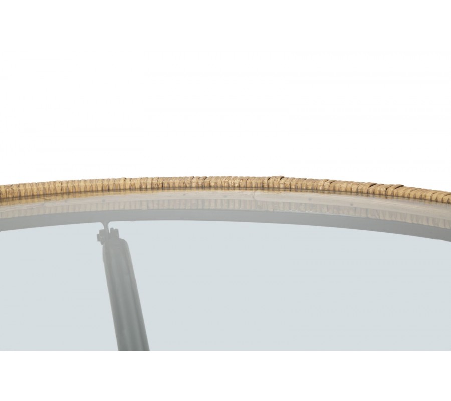 Dizajnový okrúhly konferenčný stolík Pavone spája prírodné a moderné prvky do harmonického celku. Vrchná doska je zo skla, pričom jej rám je omotaný ratanom v teplej hnedej farbe, čím stolík získava vzdušný a prírodný vzhľad.