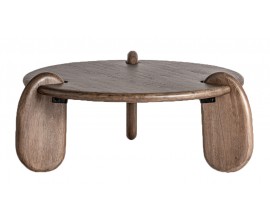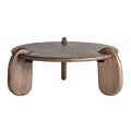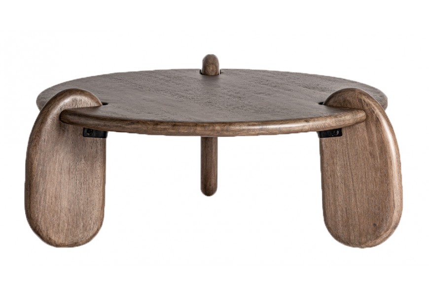 Luxusný koloniálny okrúhly masívny hnedý konferenčný stolík Valias s tromi atypickými organickými nožičkami 100 cm