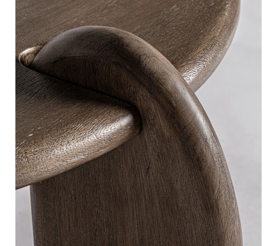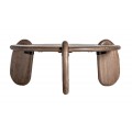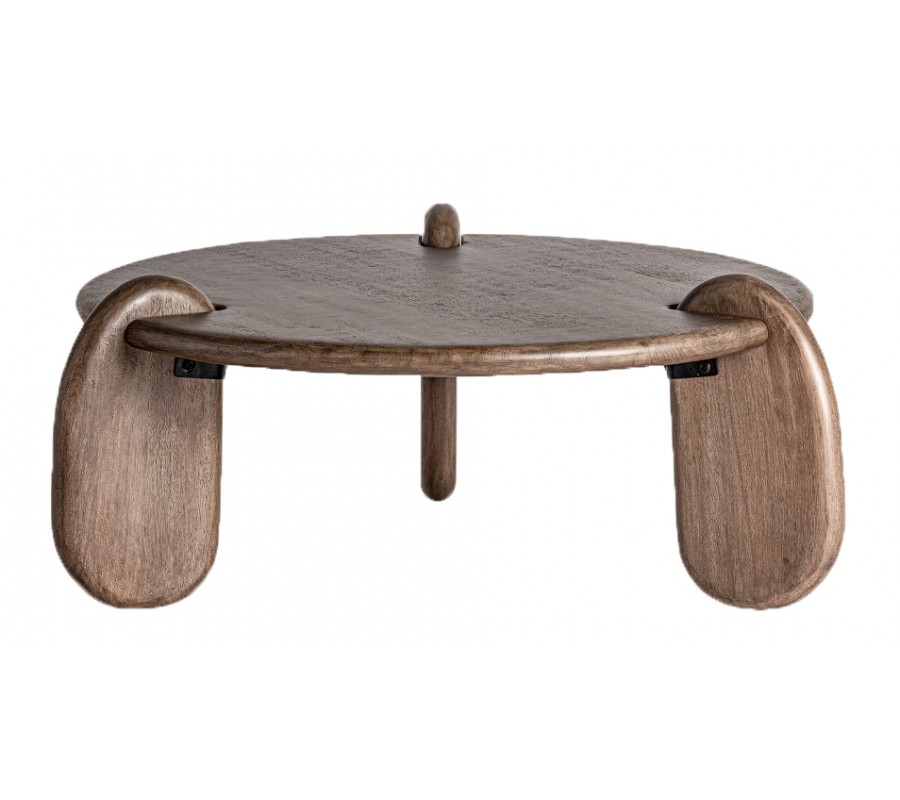 Luxusný konferenčný stolík Valias zaujme svojím výtvarne spracovaným dizajnom a netradičnou konštrukciou, ktorá v sebe spája koloniálny šarm s vintage charakterom. Vyrobený je z masívneho pevného mangového dreva v prírodnej hnedej farbe s viditeľnou štruktúrou letokruhov, ktorá vytvára pôsobivý kontrast medzi povrchom a objemom.