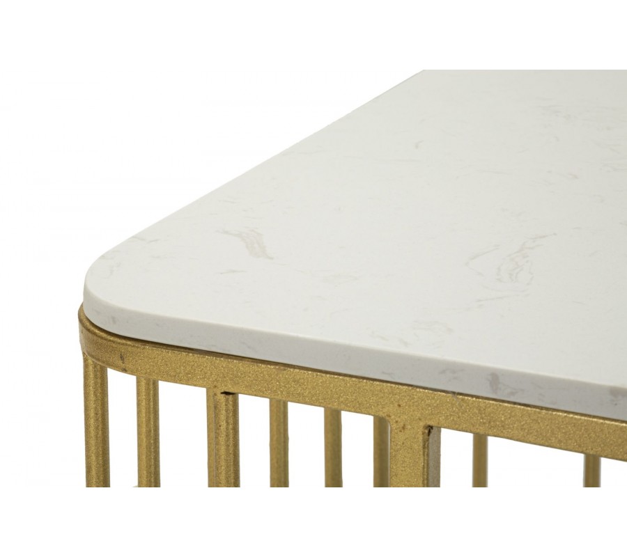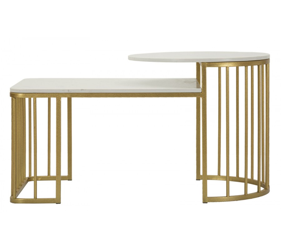 Dizajnový art deco mramorový konferenčný stolík Hera s kovovou zlatou konštrukciou v okrúhlom a obdĺžnikovom tvare 90 cm