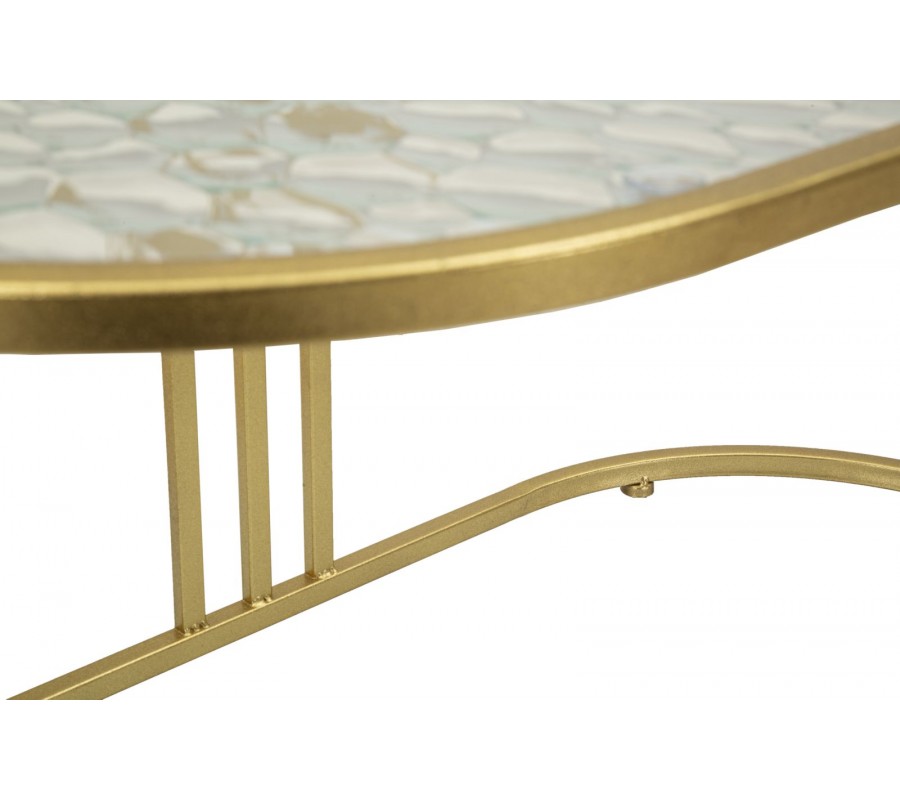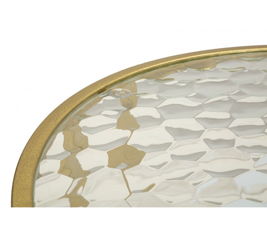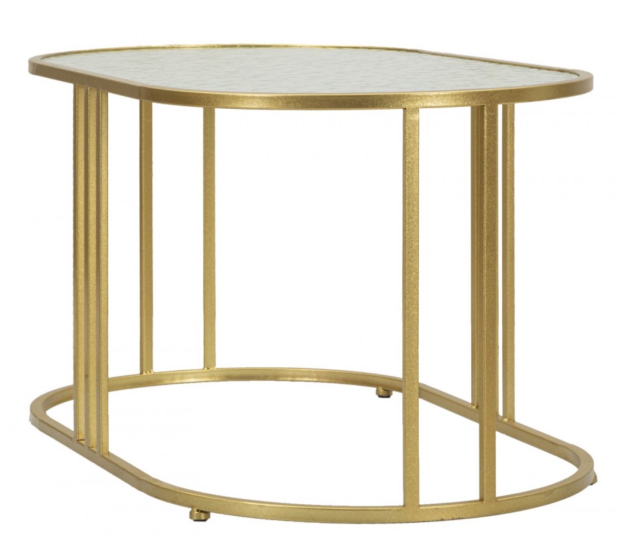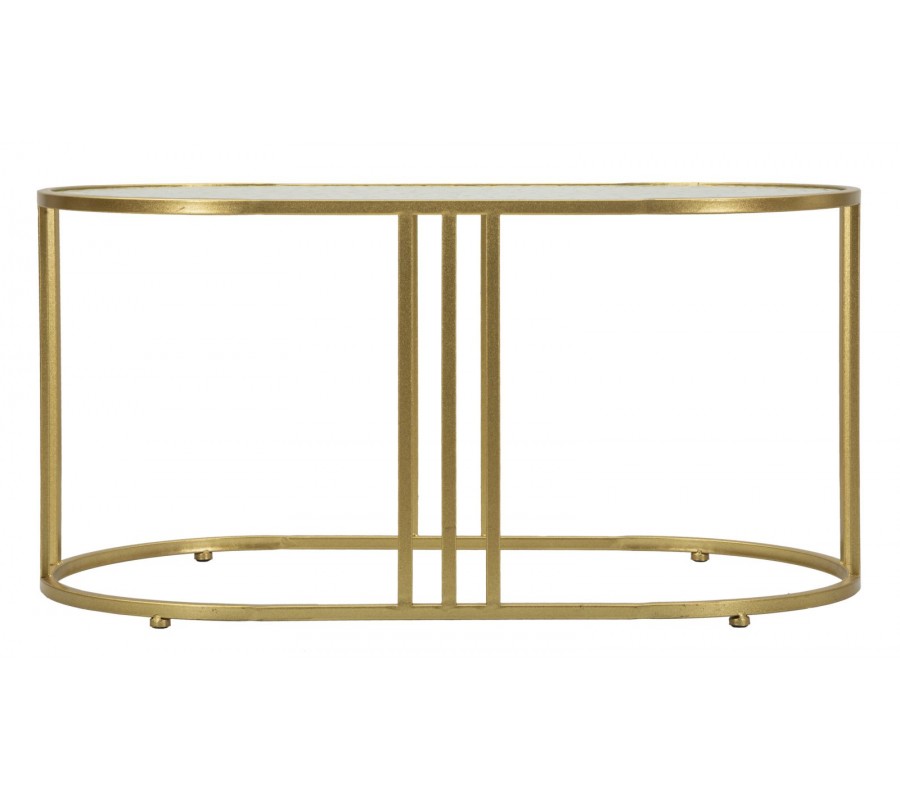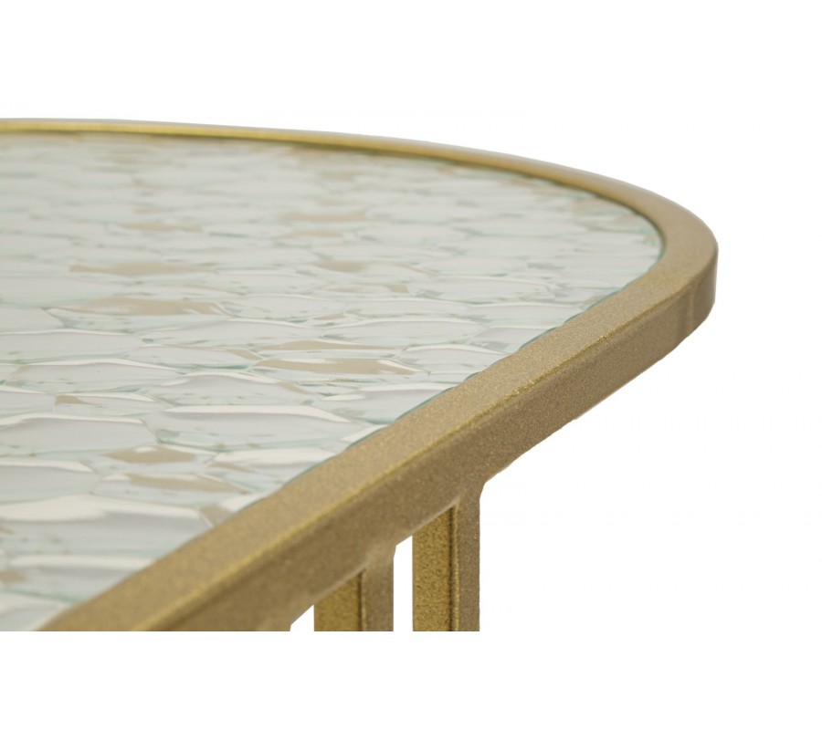 Glamour kovový zlatý oválny konferenčný stolík Meno s vrchnou doskou z jemne priehľadného skla 50 cm