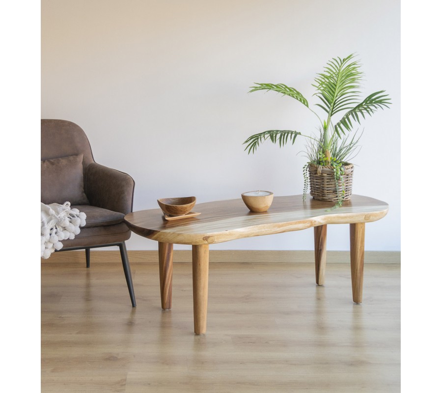 Konferenčný stolík Sulawesi výborne doplní sedačku vo svetlých zemitých odtieňoch. V modernej obývačke vynikne atypická silueta a exotický charakter suarového dreva je tiež skvelou voľbou do priestorov zariadených v etno štýle.