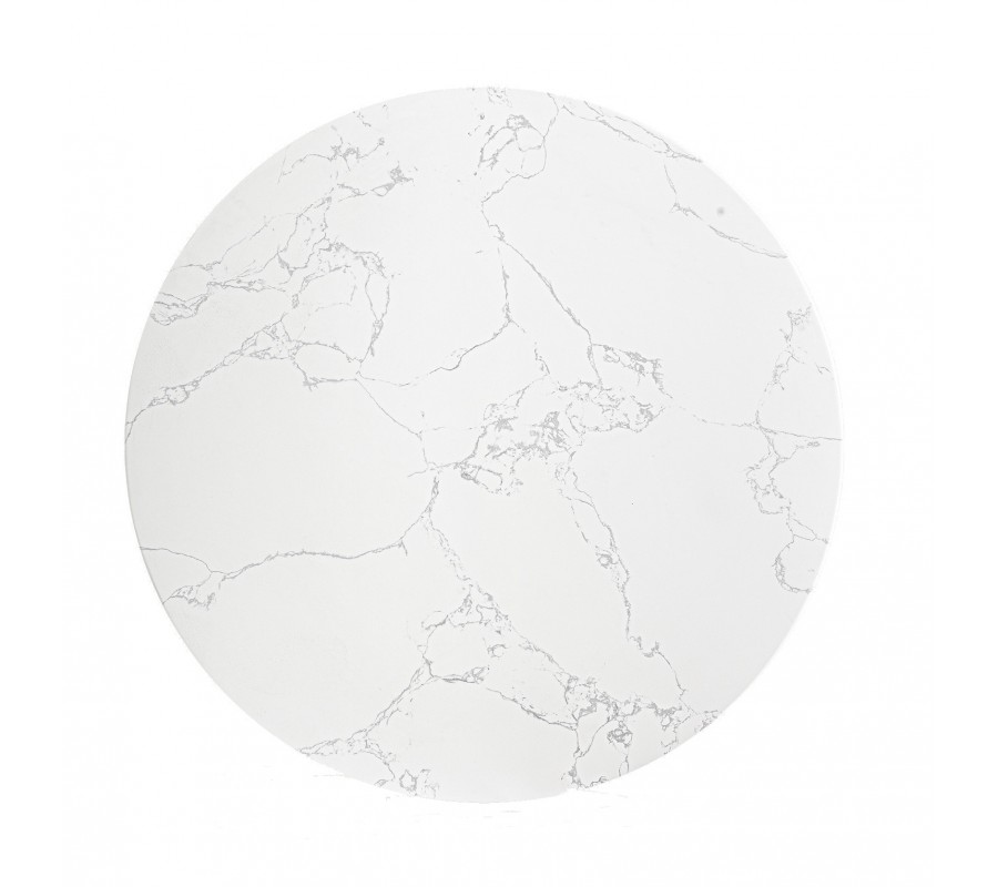 Stolík je vyrobený z kompozitného mramoru v bielej farbe s jemným sivým žilkovaním. Tento materiál je v nábytkárstve populárny vďaka svojim výborným vlastnostiam, ktoré zabezpečujú výbornú odolnosť voči vplyvom každodenného používania. V porovnaní s pravým mramorom je kompozitný mramor odolný voči vlhkosti, jednoduchší na údržbu a vďaka menšej pórovitosti aj menej náchylný na tvorbu škvŕn, zatiaľ čo vám poskytuje luxusný vizuál.