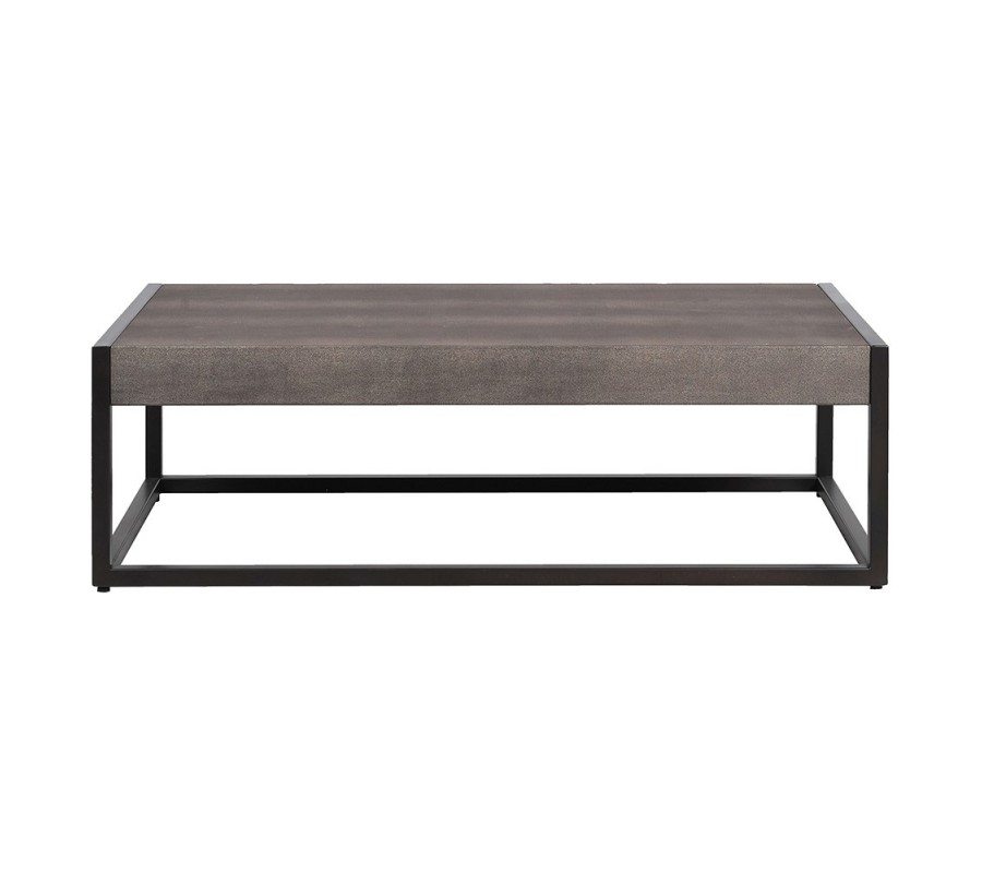 Luxusný industriálny konferenčný stolík Auden je výrazným dizajnovým kúskom, ktorý kombinuje robustnosť kovu s jemnými detailmi imitujúcimi štruktúru zvieracej kože. Jeho obdĺžniková sivá vrchná doska pôsobí sofistikovane a zároveň originálne, pričom jemné detaily povrchu dodávajú nábytku unikátny charakter. Doska je vsadená do čierneho matného kovového rámu, ktorý zaisťuje stabilitu, odolnosť a typickú industriálnu estetiku.