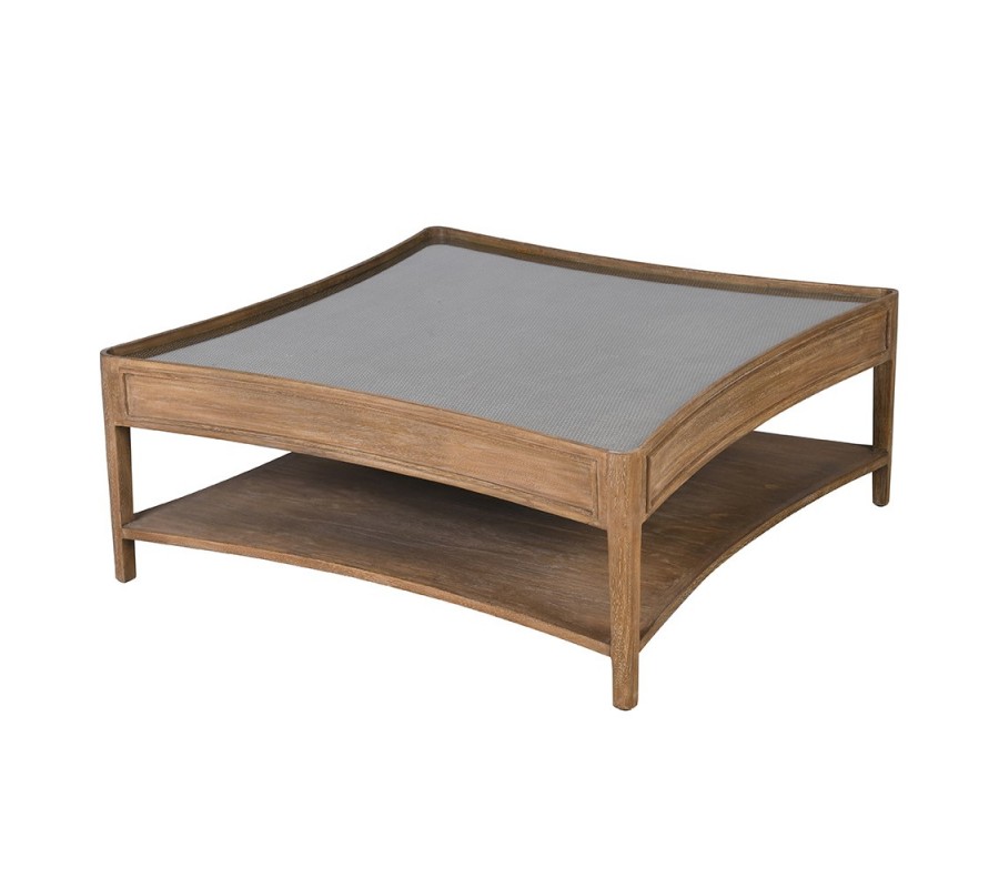 Luxusní koloniálny štvorcový konferenčný stolík Vento z masívneho hnedého dreva s ratanovým výpletom a temperovaným sklom 100 cm