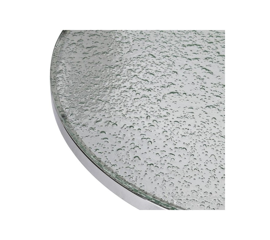 Luxusný glamour okrúhly chrómový konferenčný stolík Auron so sklenenou doskou s bublinkovým efektom 93 cm