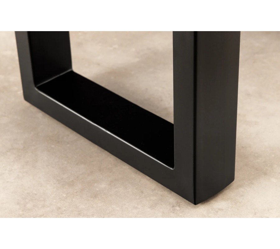 Doska je položená na nožičkách z kovu v matnom čiernom prevedení, ktoré prinášajú do dizajnu nádych industriálneho štýlu. Napájajú sa na drevené časti a majú tvar U. Ich hranatý plochý profil pôsobí minimalisticky a zároveň zabezpečí výbornú stabilitu.