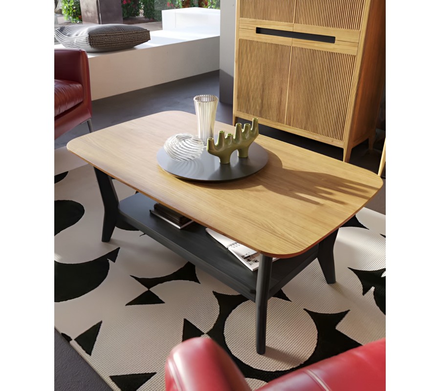 Spodná časť stolíka je vyrobená z masívneho dreva, pričom jej farebnosť aj povrchová úprava závisia od zvoleného prevedenia. Nožičky majú štíhly, elegantne tvarovaný profil, ktorý pôsobí ľahko a vzdušne, no zároveň zabezpečuje pevnú stabilitu celej konštrukcie.