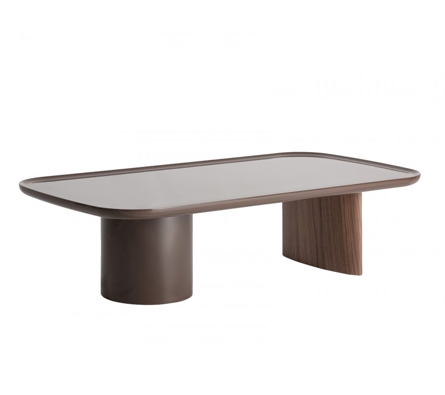Luxusný art deco obdĺžnikový hnedý konferenčný stolík Kirian s lesklým povrchom a okrúhlou a oválnou nohou 133 cm