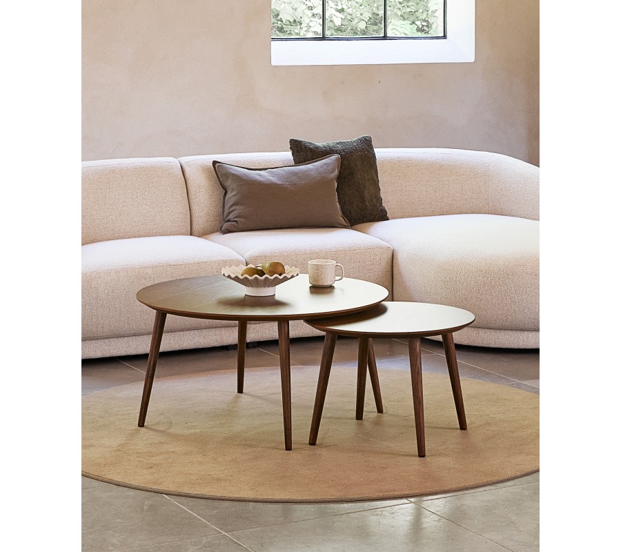 Škandinávsky set dvoch okrúhlych konferenčných stolíkov Karena v tmavej hnedej farbe 88 cm