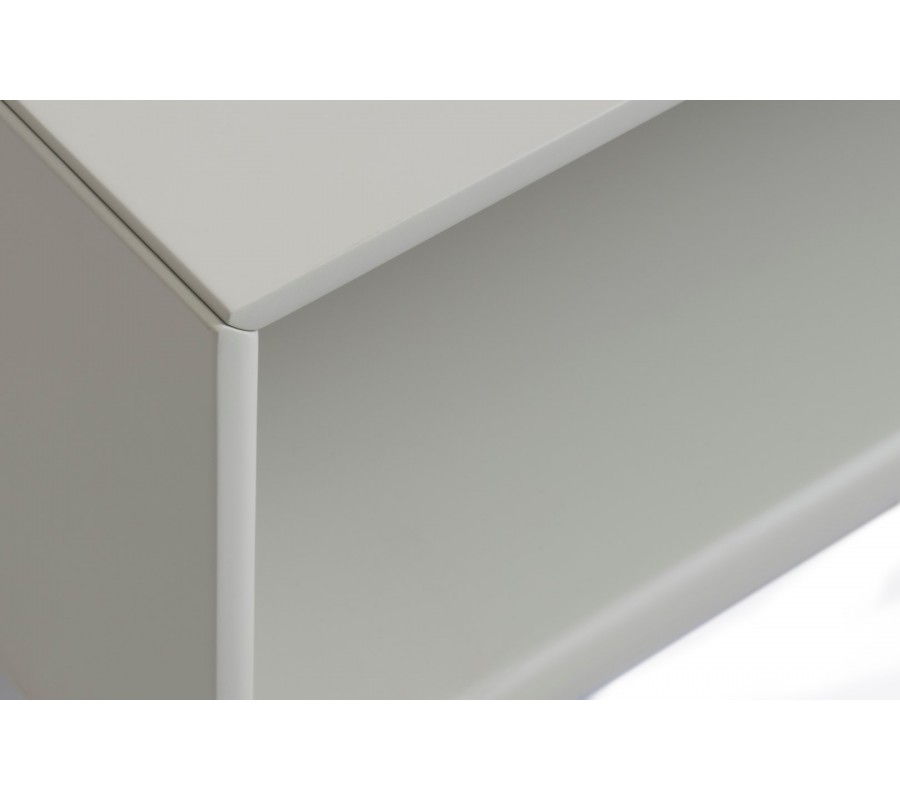 Stolík je vyrobený z MDF dyhy s melamínovou povrchovou úpravou, ktorá mu zaručuje výbornú odolnosť voči teplu, vlhkosti a oteru. Nožičky a úchytky sú z kovu. Oba materiály majú rovnakú svetlú sivo béžovú farbu, ktorá ich zjednocuje. Štýlový odtieň greige pôsobí moderne, elegantne a minimalisticky.