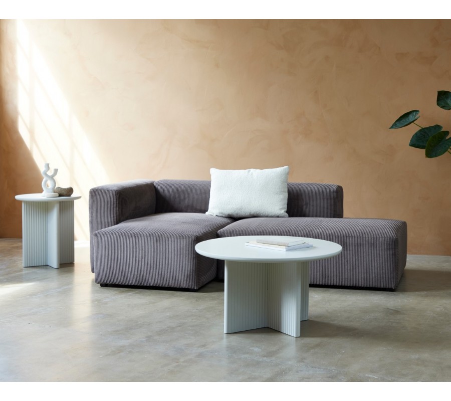 Konferenčný stolík Hvidea je nadčasovým spojením moderného minimalizmu s art deco prvkami. Svetlé prevedenie v štýlovom odtieni greige pomôže priestor presvetliť a prinesie do neho eleganciu.
