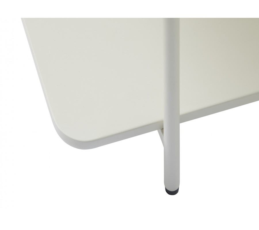 Stolík je vyrobený z kovu s povrchovou úpravou v svetlej sivobielej farbe s teplými podtónmi. Matný povrch dodáva celku jemnosť a podčiarkuje minimalistický škandinávsky charakter.
