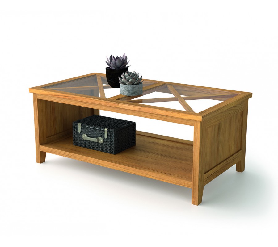 Masívny luxusný konferenčný stolík Verona so sklenenou doskou 110cm
