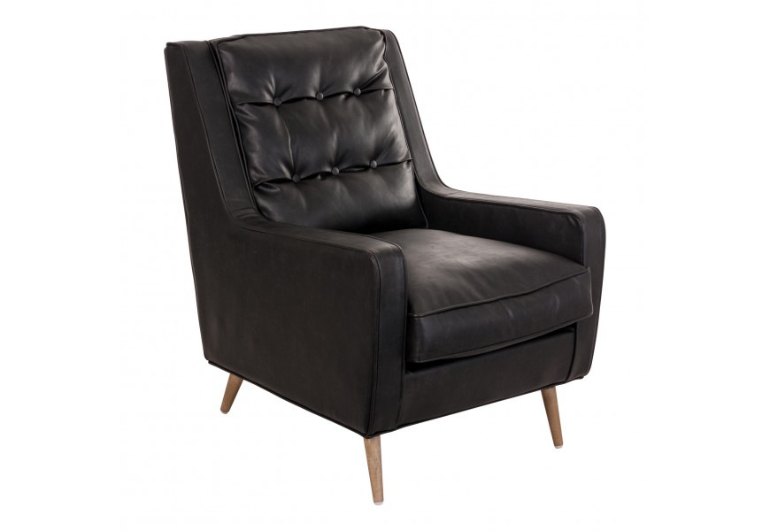 Kreslo v štýle retro vyrobené z borovicového dreva s poťahom z ekokože.