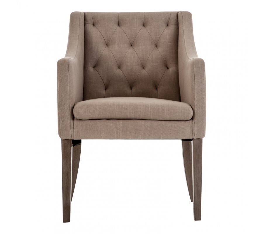 Luxusné kreslo Crudo vďaka svojmu elegantnému a klasickému tvaru vnesie do vašej miestnosti útulnú atmosféru. Čalúnený povrch v svetlej prírodnej béžovej farbe tvorí kombinácia ľanu a bavlny, čo zaručuje elegantný naturálny vzhľad a príjemný povrch. Komfort pri sedení zvyšuje mäkká sedacia časť a praktické podrúčky. Jemne tvarované operadlo sa postará o vaše pohodlie a zároveň aj dotvorí jedinečný dizajn svojím prešívaným zdobením. Čalúnené telo kresla dopĺňajú jednoduché nohy vyrobené z kvalitného masívneho dreva. Celkový vzhľad pôsobí elegantným dojmom a svojou univerzálnou farebnosťou je kreslo Crudo skvelým adeptom na doplnenie farebnejšie i monochromaticky ladených interiérov. Skvelo doplní napríklad luxusné obývačky ladené v klasickom štýle, ale i priestory luxusných kaviarní, hotelových lobby barov či iných reprezentatívnych priestorov!