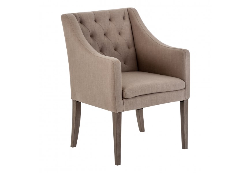 Luxusné klasické kreslo Crudo s béžovým prešívaným čalúnením a drevenými nožičkami 87cm