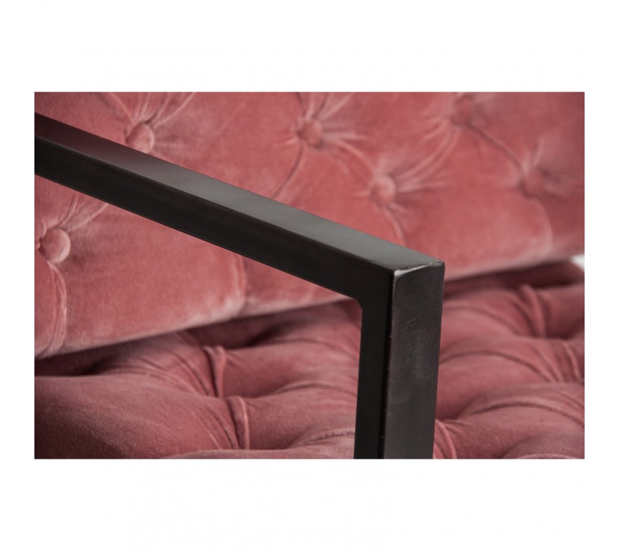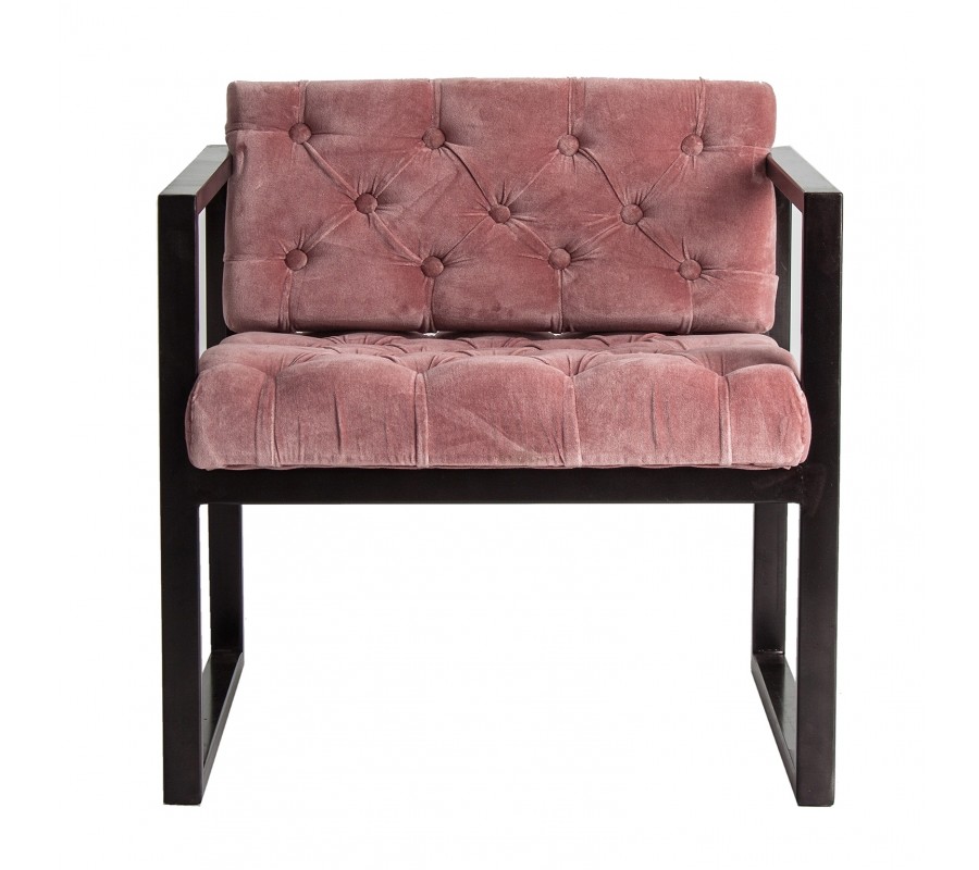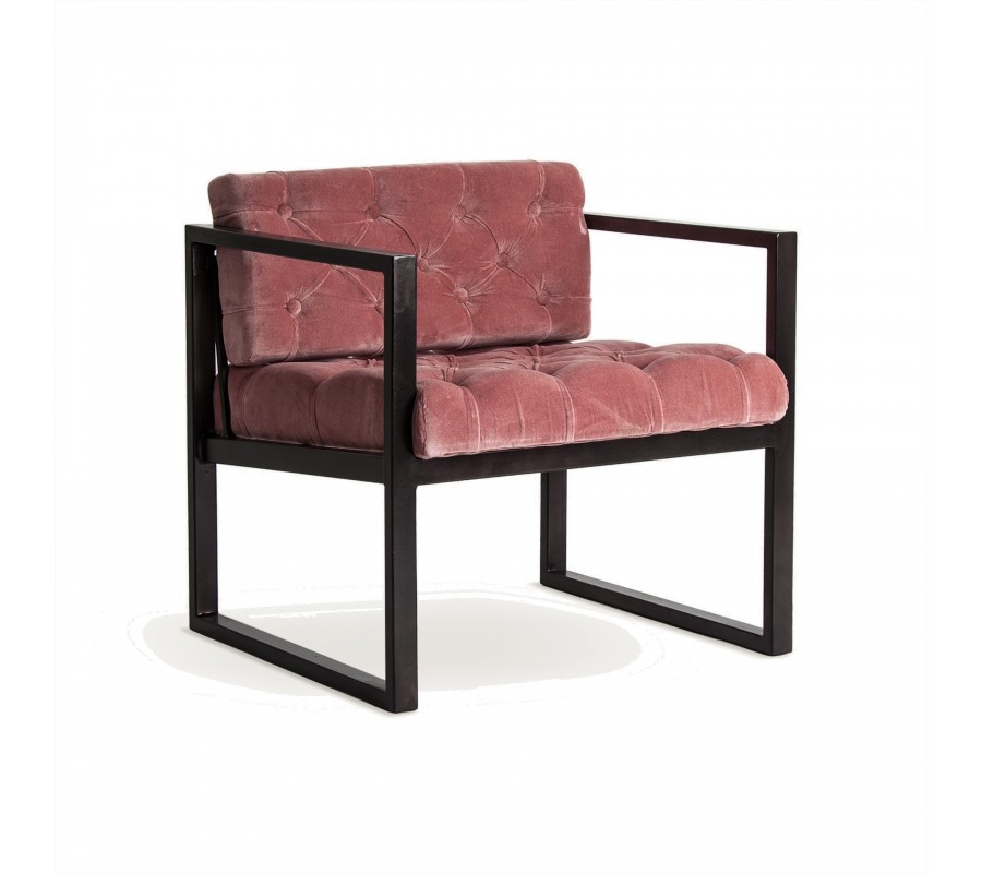 Túžite po štýlovom kúsku do vášho interiéru, ktorý zaujme na prvý pohľad? Siahnite po tomto exkluzívnom kresle Alvaro! Dizajnová železná konštrukcia čiernej farby a poťah zo zamatu v ružovej farbe tvoria zaujímavú a príjemnú kombináciu, ktorá obohatí každý interiér. Nadčasové chesterfield prešívanie robí kreslo ešte štýlovejším a originálnejším. Šírka 70cm poskytuje dostatok miesta na sedenie a vďaka príjemnému zamatu vám taktiež zabezpečuje stopercentný komfort. Kreslo Alvaro sa dá skvelo kombinovať s pastelovými svetlými farbami alebo nábytkom s čiernou či tmavohnedou konštrukciou.