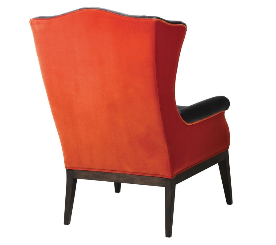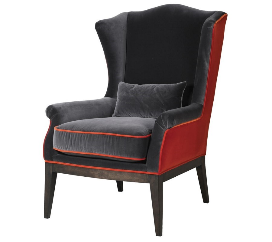 Dizajnové kreslo Faust je ukážkou rafinovaného spojenia neutrálnej sivej so sýtou oranžovou zamatovou textíliou v podobe mäkkého čalúnenia. Stabilitu kresla zabezpečujú nohy z brezového dreva v sivohnedých odtieňoch. Vďaka výške operadla je počas sedu podopieraná hlava, v kresle sa tak cítite pohodlne a uvoľnene aj pri dlhom čítaní či konverzácii. Vysoké čalúnené operadlo s opierkami na ruky a pridaným bedrovým vankúšom je zárukou pohodlia aj počas dlhého odpočinku v sede. Kreslo je vďaka dvojfarebnej kombinácii výrazným a neprehliadnuteľným prvkom interiéru, ktorý sa však nemusíte báť kombinovať aj s výraznými sýtymi farbami. Ak chcete vniesť do vášho interiéru farebný kontrast v podobe nábytku, kreslo Faust je jednoznačne správnou voľbou.