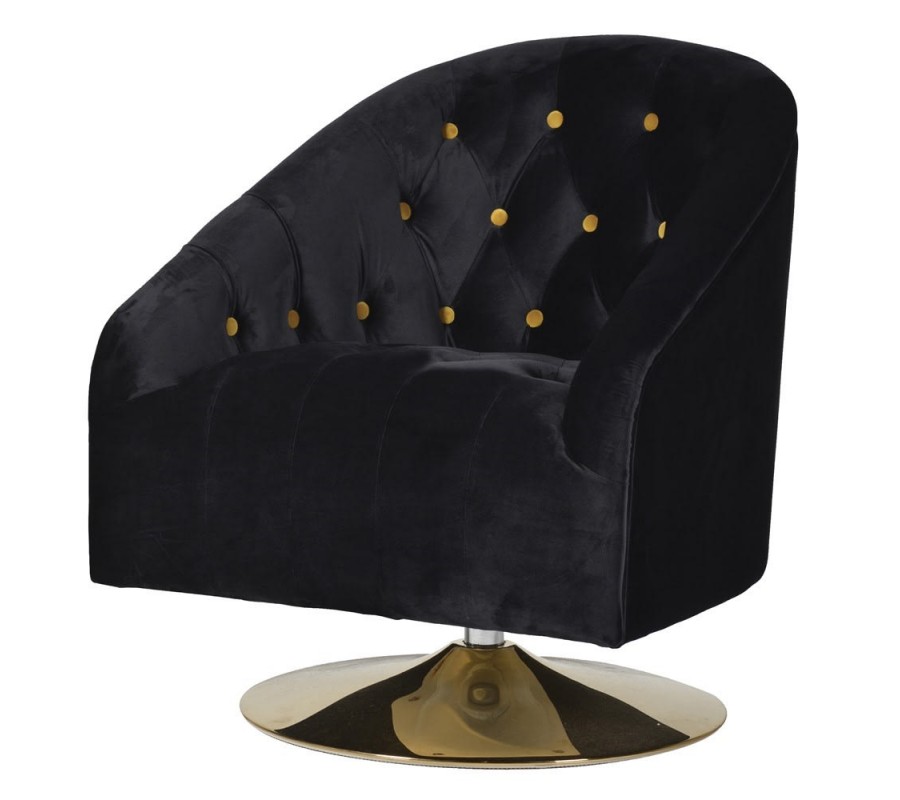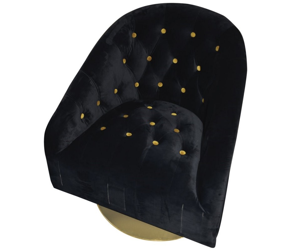 Jedinečné a nadčasové kreslo Fenwick je vyhotovené s prvkami nádherného štýlu Chesterfield, ktorý je typický najmä svojou tradičnou úpravou poťahu vás poteší možnosťou otáčania a flexibilnosťou v tomto ohľade. Čierny zamat v kombinácii s kovovými cvokmi v zlatej farbe, ktoré uťahujú poťah do vkusného vzoru pôsobí naozaj dizajnovo a nadčasovo, najmä vynímajúc sa na okrúhlej nohe v lesklej zlatej farbe. Kreslo Fenwick zapadne najmä do obývačiek, kancelárií či lobby barov ladených v štýle chesterfield s zámockým či barokovým nádychom a doplnkami vo výraznejších farbách a z luxusných materiálov.