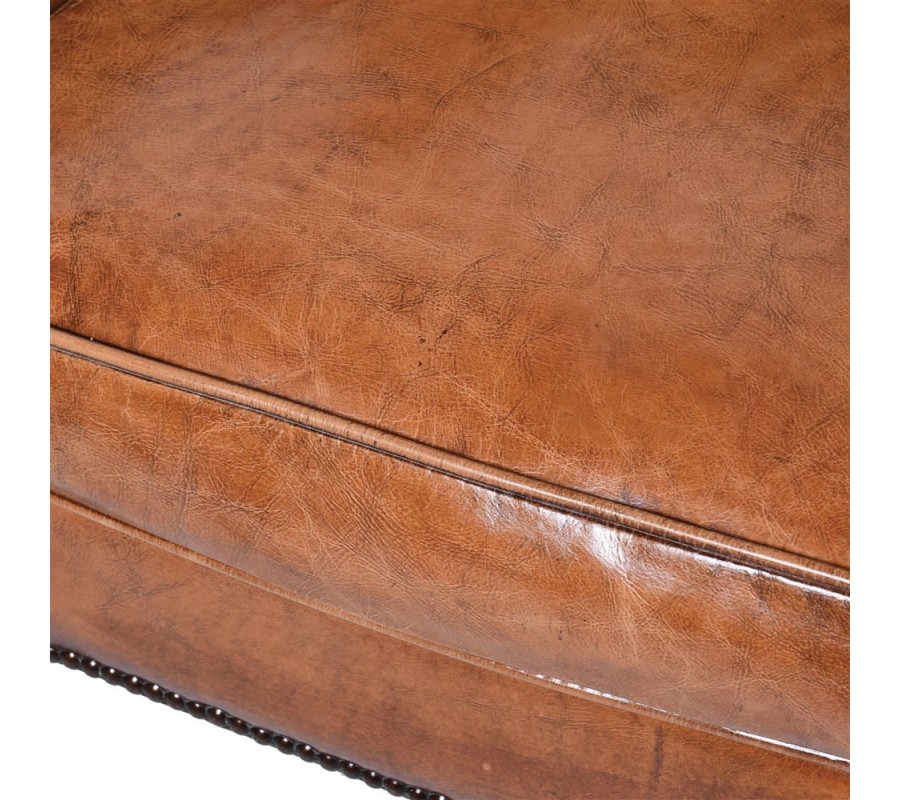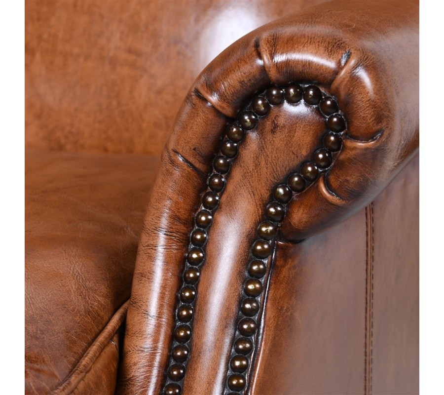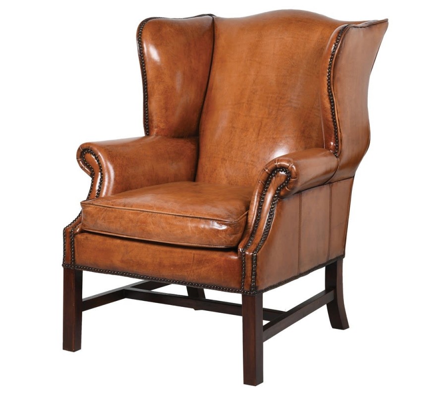Luxusné hnedé kreslo Franze IV typu ušiak s koženým čalúnením a s drevenými nohami 105cm