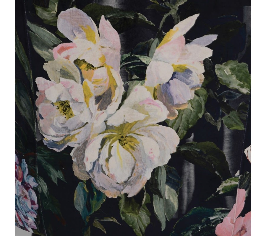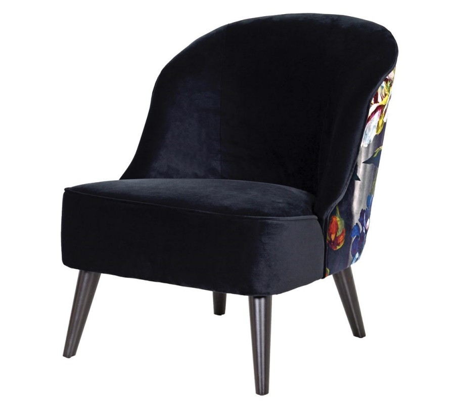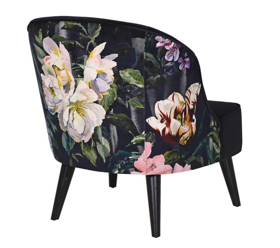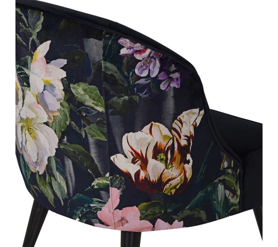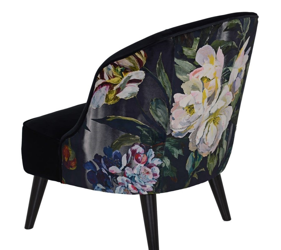 Odvážny vzor kresla Tulip II v podobe poťahovej látky s množstvom pestrofarebných kvetov je doplnený luxusným čiernym poťahom so zamatovým leskom, ktorý dokonale podčiarkuje exkluzívny vzhľad kresla. Krivka operadla vytvára rafinované zaoblenie, ktoré z kresla Tulip II vytvára mimoriadne nadčasový a elegantný kúsok. Luxusná povaha kresla je podčiarknutá masívnymi čiernymi nohami, ktoré sa spolu s kreslom stanú šperkom každého štýlového interiéru. Kreslo svojou eleganciou zapadne nielen do luxusných domácností v Art-deco štýle, ale aj do moderných kaviarenských a klubových priestorov či reprezentatívnych priestorov firiem. Kvetované kreslo Tulip II sa hodí do štýlovo zariadených interiérov, vynikne ako solitér so zlatým príručným stolíkom, lampou s textilným tienidlom a doplnkami, ktoré umocnia pocit pohodlia.