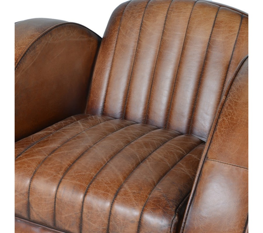 Luxusné hnedé kožené kreslo Reno s prešívaným čalúnením 74cm