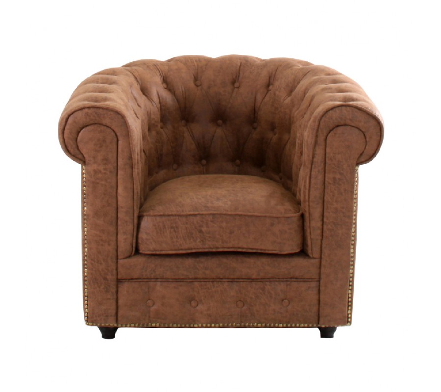 Krásne chesterfield kreslo je vyzdobené zlatými cvokmi . Poťah je vyrobený z polyesteru.