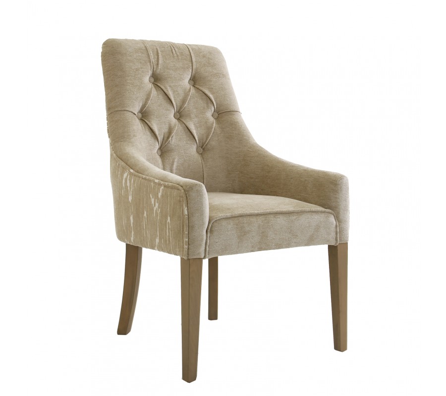 Dizajnové provensálske kreslo QUIMPER. Kombinuje tiež chesterfield štýl svojim drukovaním. Vyrobené z borovicového dreva, preglejky, v kombinácii s penou / polyestrom.