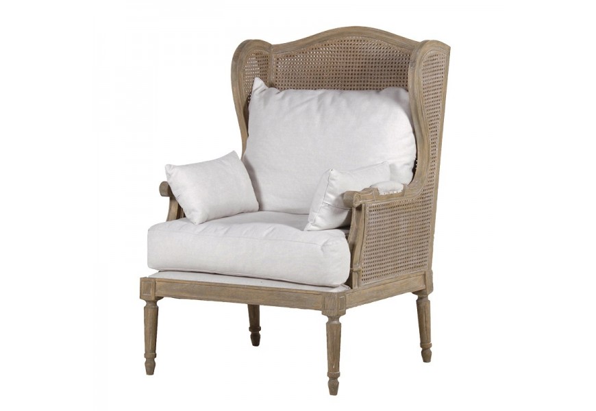 Pôvab vintage vzhľadu dubového rámu kresla Elise v kombinácii s vypletanými časťami konštrukcie je obľúbeným romantickým prvkom provensálskeho štýlu. Drevená konštrukcia kresla je na chrbtovej opierke zaoblená do tvaru ušiak a poskytuje priestor pre pohodlné opretie hlavy aj počas dlhšieho odpočinku či rozhovoru. Čalúnené časti v podobe béžových vankúšov s obsahom prírodnej bavlny a ľanu sa stanú obľúbeným miestom počas čítania zaujímavej knihy či stretnutiach s rodinou a priateľmi. Kreslo Elise dokonale vynikne v kombinácii s množstvom romantických doplnkov s florálnym vzorom a stane sa elegantnou oázou pokoja vo vašom interiéri.