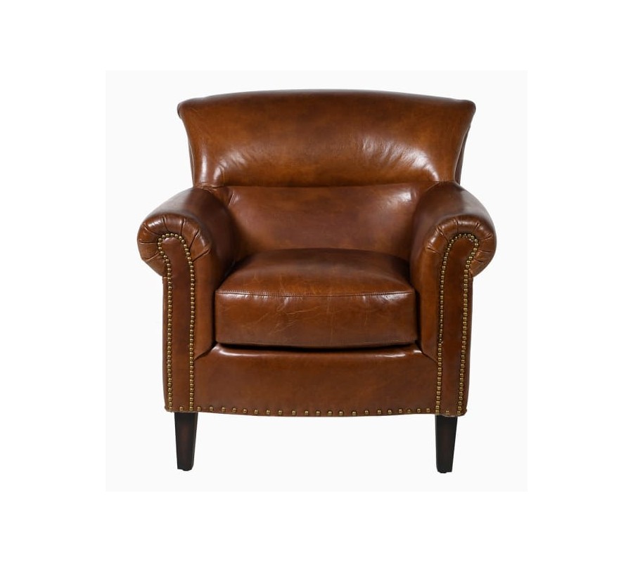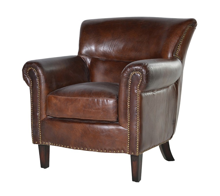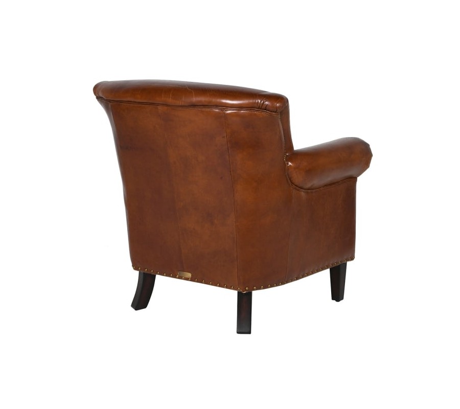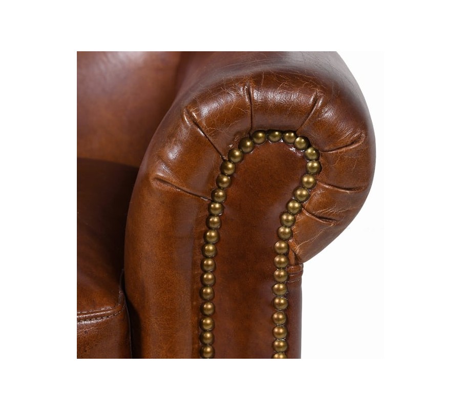Hnedé kožené kreslo je ručne vyrobené z pravej býčej kože v hnedej farbe. Disponuje vysokou chrbtovou opierkou a dizajnovými ozdobnými cvokmi, ktorými má lemované okraje opierok na ruky a okraje spodnej časti. Sedenie v kresle je veľmi pohodlné a vďaka čalúneniu z pravej kože je príjemné a vaše návštevy sa v ňom budú cítiť komfortne. Kreslo sa hodí do klasicky a industriálne zariadených priestorov a vďaka luxusnému prevedeniu je vhodné aj do reprezentatívnych priestorov či pánskych klubov a lobby barov.