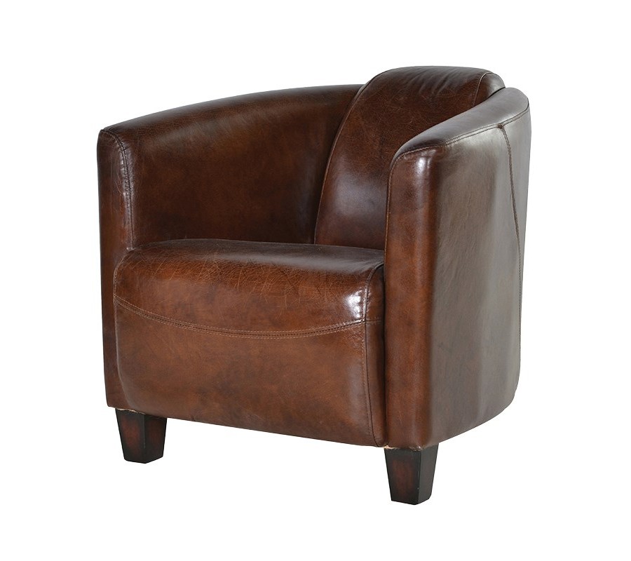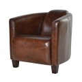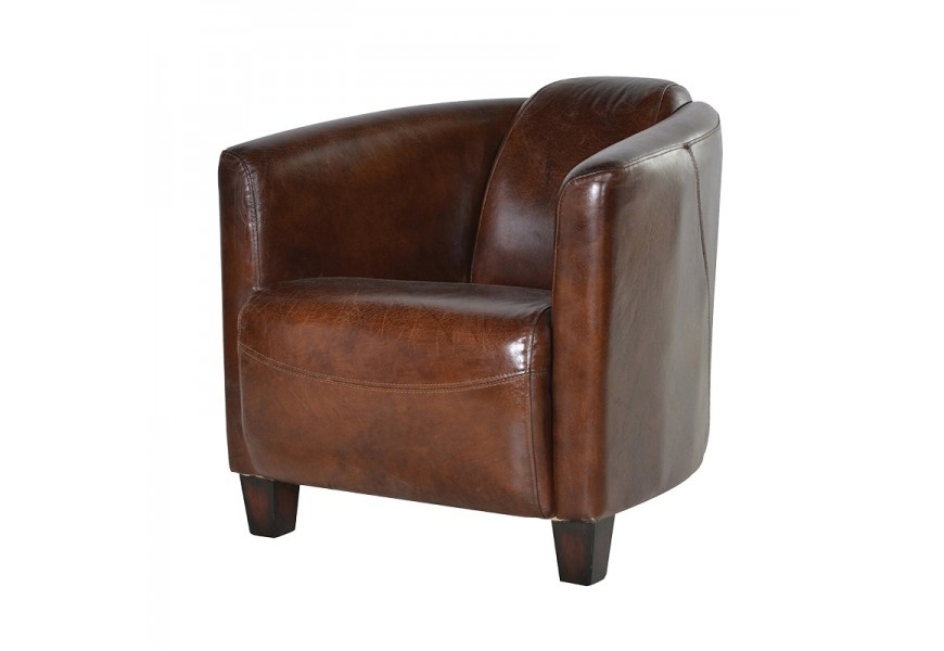 Luxusné kreslo z talianskej pravej kože v hnedej farbe sa hodí do reprezentatívnych priestorov, hotelov a lobby barov ale aj do riaditeľských kancelárii pre pohodlné usadenie obchodných partnerov. Kreslo je vyrobené z pravej kože s kvalitnou povrchovou úpravou. Svojim vzhľadom je minimalistické a dominantnými sú jeho oblé tvary rúčok spoločne prepojených chrbtovou oblúkovou opierkou. Čalúnenie kresla je pohodlné a je potiahnuté pravou kožou. Kreslo stojí na drevenných nožičkách tmavej farby. Kreslo sa hodí do interiéru zaradeného v zemitých farbách do kombinácie s masívnym nábytkom v prírodnom odtieni tmavého dreva napríklad mahagón.