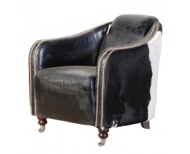 Kožené exkluzívne vintage kreslo Belmont v čierno-bielej farbe
