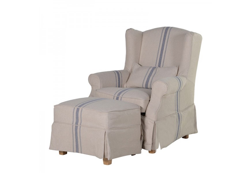 Štýlové vidiecke kreslo s podnožkou Benicia 100cm