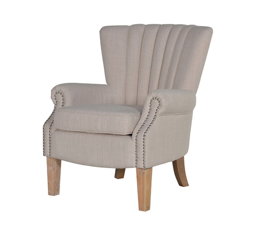 Štýlové luxusné kreslo Studd je unikátny kúsok do vašej obývačky, kde prinesie pohodlie a dizajn. Kreslo je vyrobené z kombinácie dubového a borovicového dreva a čalúneného textilného poťahu. Chrbotvá opierka má niekoľko vertikálnych prešívaných pruhov, ktoré vytvárajú jemné vlnenie operadla. Opierky na ruky sú oblé a mierne vytočené smerom von a tak vytvárajú jemné špirály, ktoré su z prednej časti vybíjané. Sedadlo kresla má vysoký čalúnený podsedák štvorcového tvaru, ktorý zvyšuje komfort a estetickosť. Kreslo je zakončené drevenými nožičkami pričom zadné dve sú vytočené smerom von. Sú hnedej matnej farby s hladkým povrchom.
