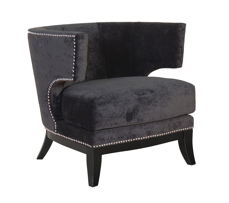Luxusné čalúnené kreslo Frimble je výnimočné svojim zaobleným operadlom, ktoré plynulou krivkou prechádza do opierok na ruky a vytvára tak harmonický celok. Mäkký poťah v čiernej farbe je doplnený ozdobnými klinčekmi v striebornej farbe a dodáva kreslu typický zámocký pôvab. Tmavá sedacia časť doplnená čiernymi nohami z dreva pôsobí luxusne a vďaka výške nôh aj odľahčene. Kreslo Frimble sa hodí do štýlovo zariadených interiérov, vynikne ako solitér s dreveným príručným stolíkom, lampou s textilným tienidlom a doplnkami, ktoré umocnia pocit pohodlia. Vďaka pôvabu nestarnúcej elegancie zapadne do príjemných kaviarenských a klubových priestorov, reprezentatívnych priestorov firiem či luxusných domácností v honosnom zámockom štýle.