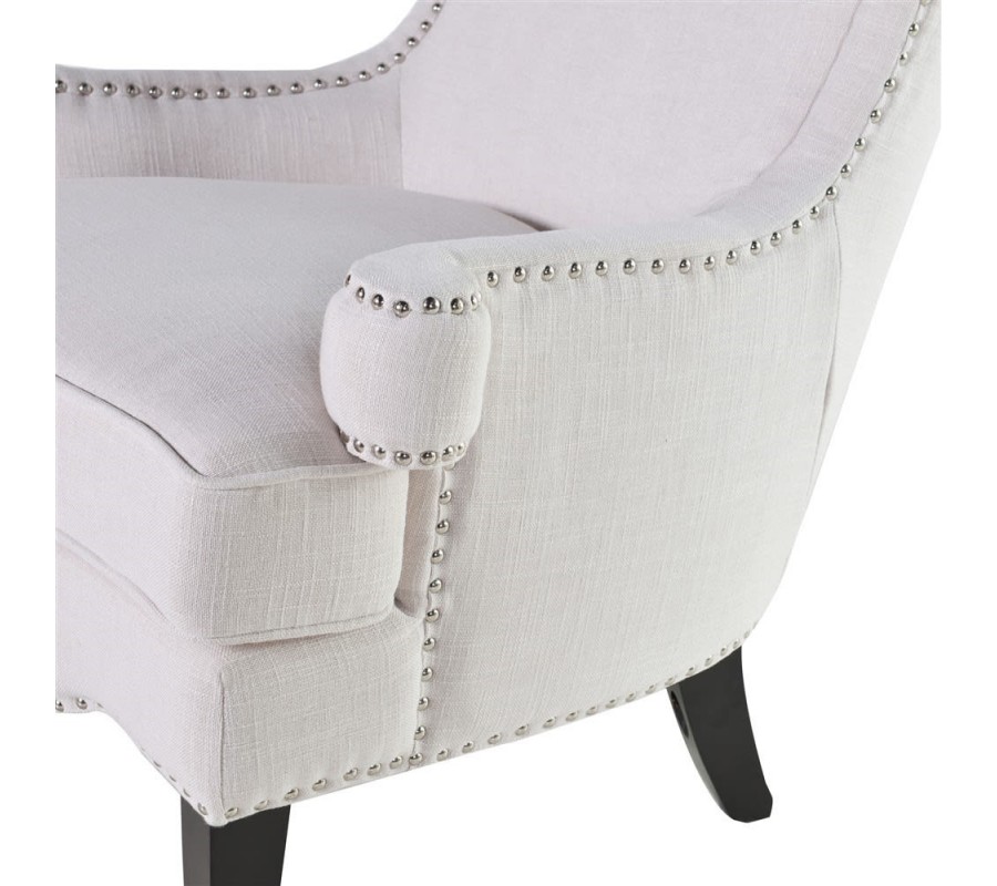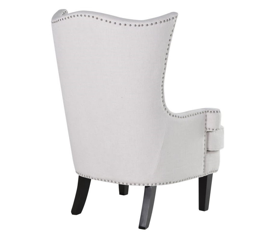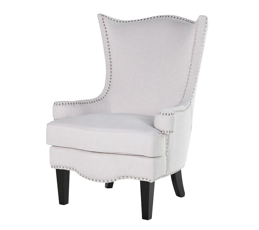 Elegantné kreslo Eldra v tvare ušiak je obľúbeným prvkom moderných interiérov plného elegancie a pôvabu. Výrazná tvarová línia kresla je doplnená bielym neutrálnym poťahom, ktorý je zdobený dekoratívnymi kovovými sponkami. Vďaka výške čalúneného operadla v tvare ušiak a subtílnych opierok na ruky je kreslo vhodné aj na dlhé odpočinkové sedenie. Kreslo krásne vynikne ako solitérny prvok v kombinácii s príručným stolíkom a stojacou lampou. Pocit pohodlia počas odpočinku v kresle môžete umocniť pridaním menšieho koberca či pohodlného taburetu.