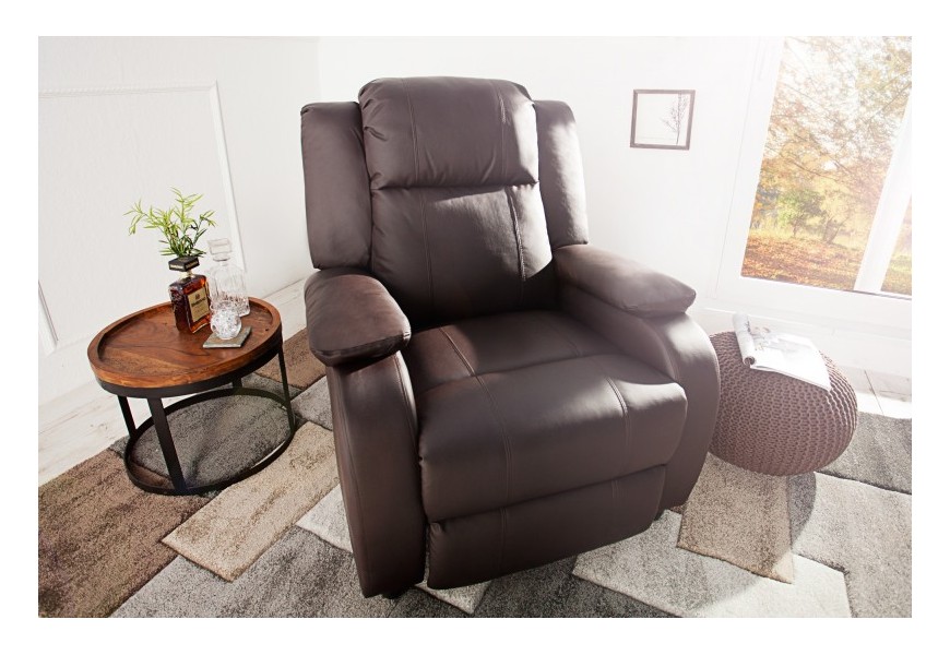 Luxusné nastaviteľné kreslo Hollywood v nadčasovom, hnedom farebnom prevedení sa stane Vašim ideálnym spoločníkom na oddych po náročnom pracovnom dni. Svojim klasickým vzhľadom je tak rovnako dobrou voľbou do interiérov zariadených v modernom, ale aj retro štýle. Poťahový materiál kresla je vyrobený z ekokože.