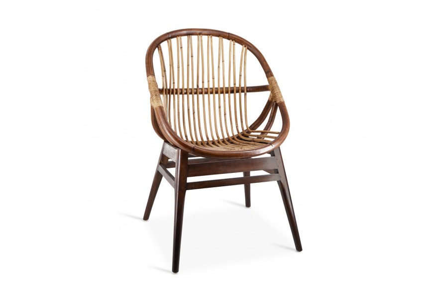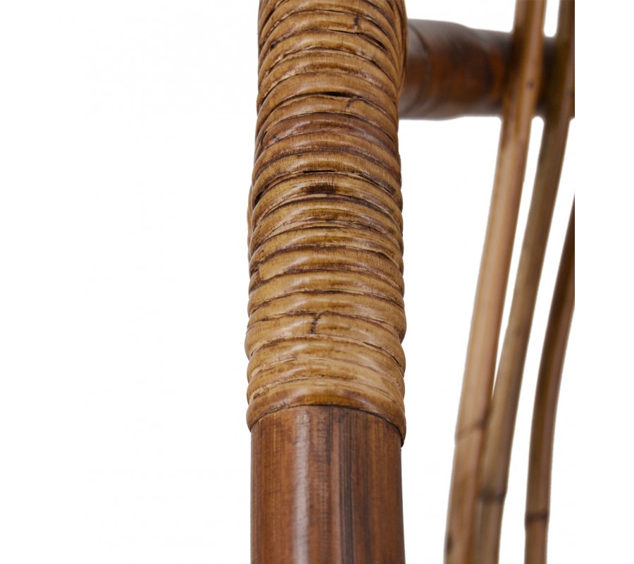 Štýlové a nadčasové kreslo Rattan vám prináša originálny dizajn, ktorý zaujme na prvý pohľad a zaručene upúta pozornosť. Kreslo je vyrobené z kombinácie materiálov. Konštrukcia s nožičkami je z masívneho dreva mindi a sedacia časť s operadlom predstavuje kombináciu bambusu a ratanu. Vďaka oválnemu tvaru bude váš sed dokonalo komfortný a kreslo zároveň pôsobí jedinečným a originálnym dojmom. Príjemná hnedá farba v rôznych odtieňoch skvelo vynikne v svetlých interiéroch s bielymi stenami, ale netreba sa báť ani umiestnenia v tmavších priestoroch. Odporúčame taktiež kombináciu s ďalšími kúskami z našej kolekcie Rattan.