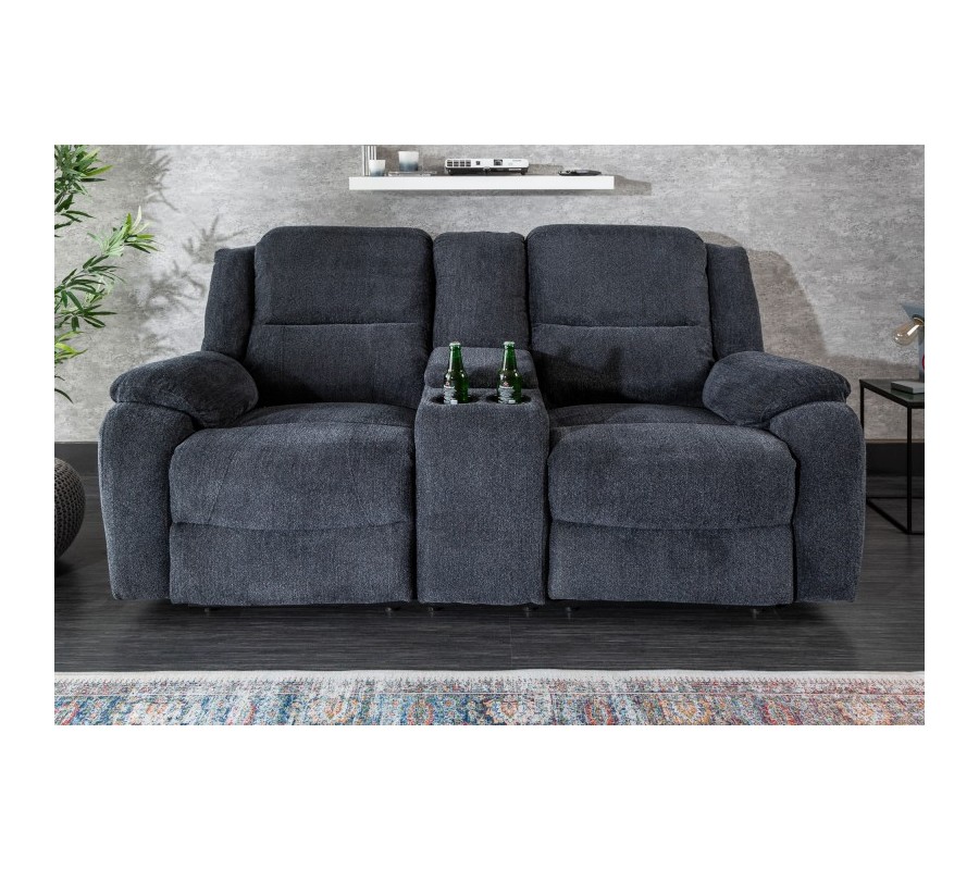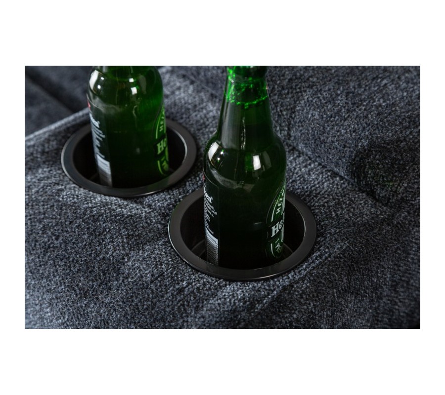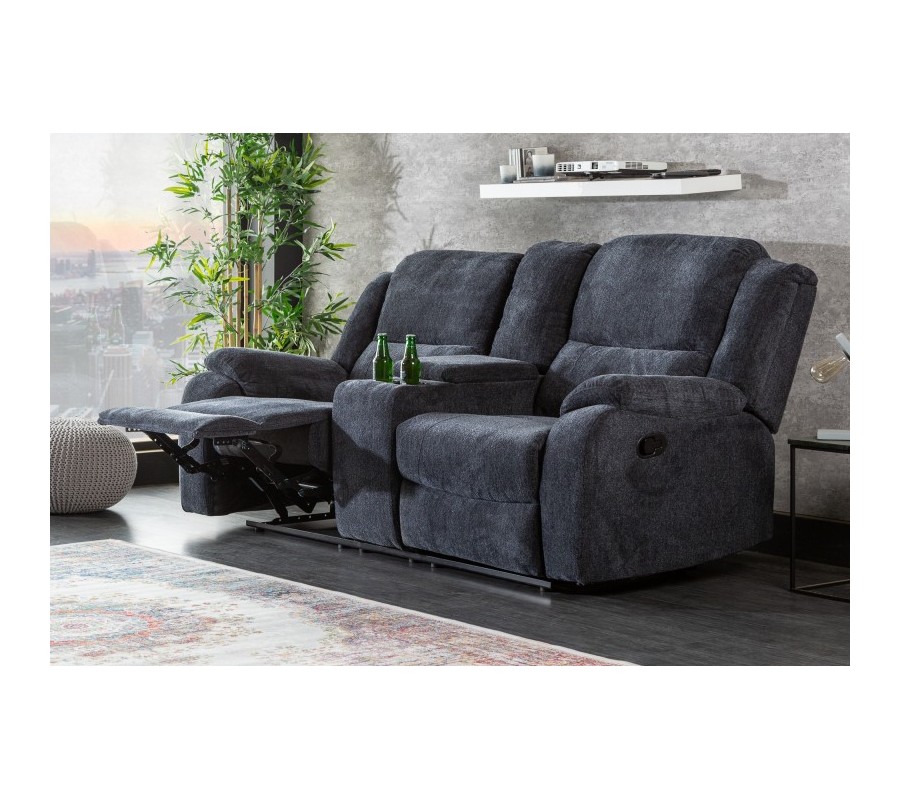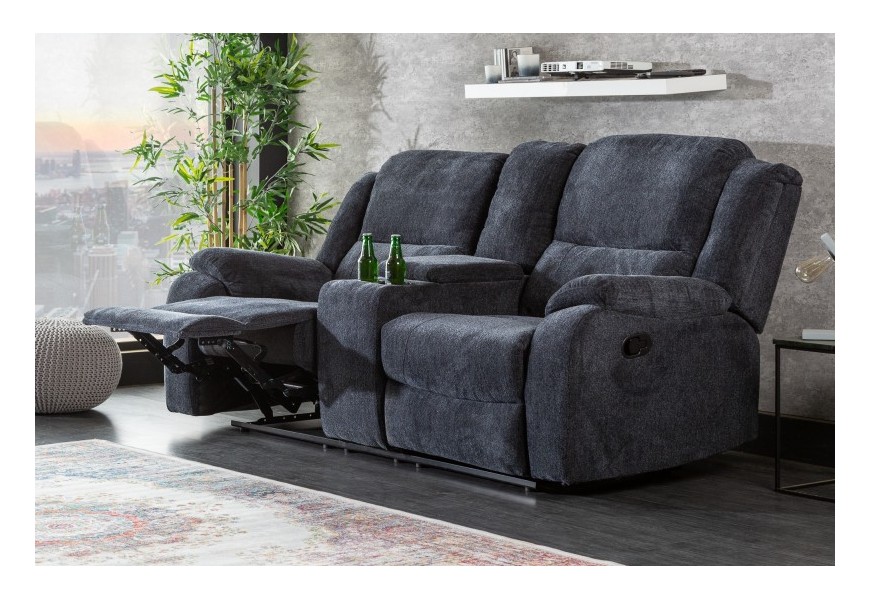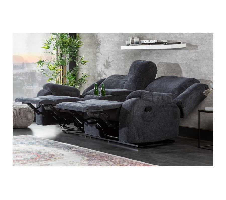 Moderné sivé polohovateľné kino dvojkreslo Phoenix s odkladacím priestorom na pohár 185cm