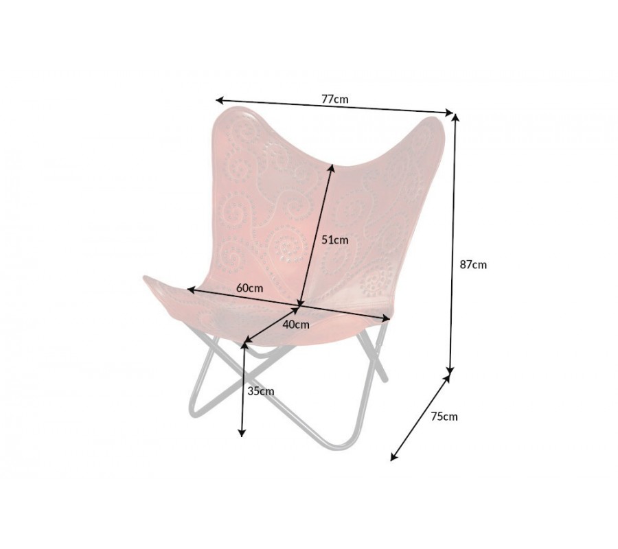 Nadčasový dizajn kresla Butterfly Moffat sa vďaka svojmu tvaru pripomínajúcemu rozpäté krídla motýľa stane obľúbeným prvkom vášho interiéru. Minimalistické kovové nohy v čiernej farbe sú ohýbané do prekríženého tvaru a dodávajú kreslu nádych vzdušnosti. Okrem zaujímavého tvaru je kožený poťah ozvláštnený dekoratívnym vzorom po celom svojom povrchu, ktorý pozostáva z ozdobného prešívania a dekoratívnych nitov. Kreslo Butterfly Moffat sa stane dokonalým doplnením vašich dizajnových obývačiek, predsiení či pracovní, dokonale zapadne aj do reprezentatívnych priestorov firiem či vkusných kaviarní.