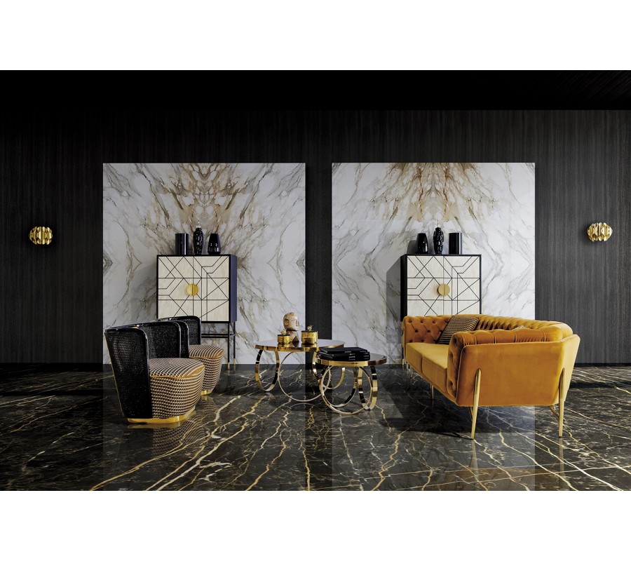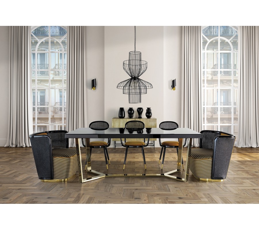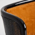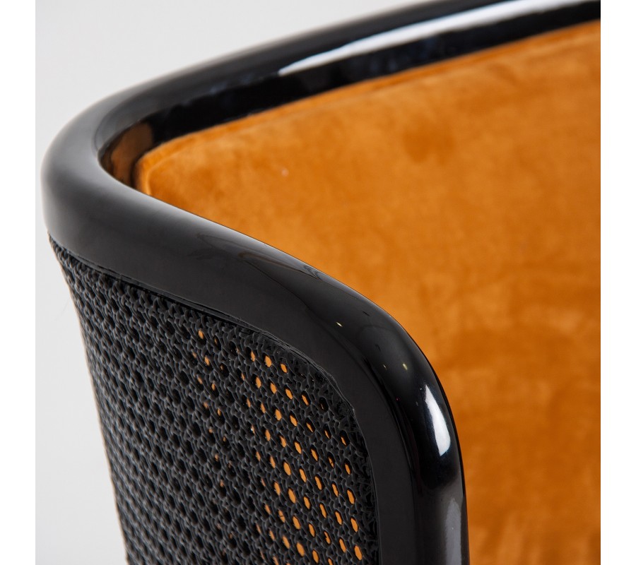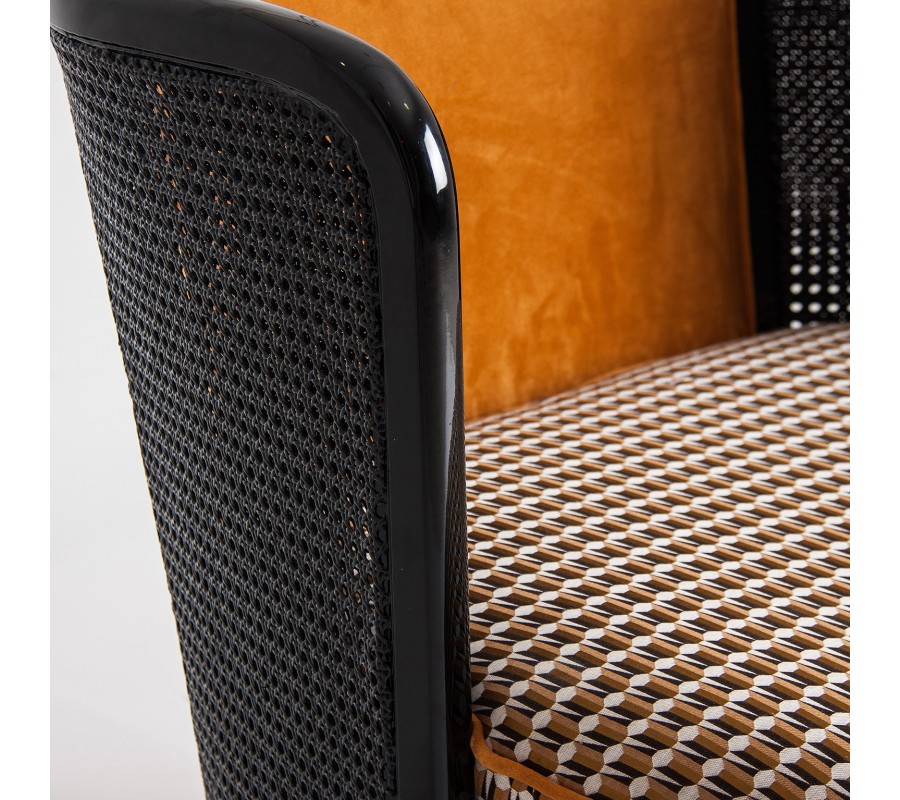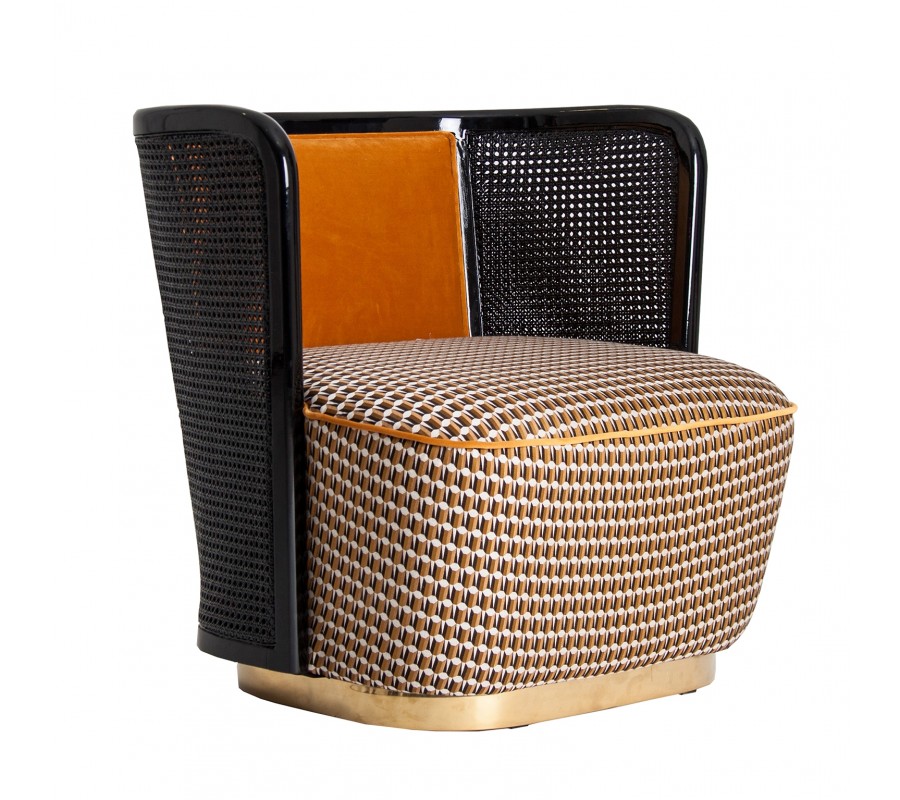 Jedinečné kreslo Brilon v luxusnom Art-deco štýle sa stane strojcom nezameniteľného pohodlia vo vašom interiéri. Rafinované zaoblené masívne operadlo, ktoré plynule prechádza do opierok na ruky je vypletané ratanom v tmavom odtieni a celkový vzhľad operadla tak značne odľahčuje. Pohodlie počas sedu je zabezpečené zamatovým čalúnením na operadle v horčicovej farbe, ktoré je doplnené geometrickým vzorom na poťahu sedadla v ladiacich odtieňoch. Elegancia a pôvab kresla Brilon sú podčiarknuté kovovou podstavou v tvare kruhu v luxusnom zlatom prevedení. Tento mimoriadny kúsok sa nestratí v žiadnom luxusnom priestore plnom Art-deco prvkov z kovu, masívnych povrchov z exotických drevín či drahých kameňov. Odporúčame ho kombinovať s ďalšími prvkami z našej rovnomennej kolekcie Brilon v rovnakom štýle a prevedení.