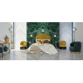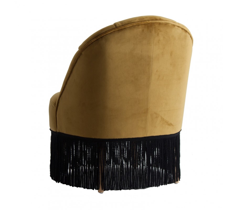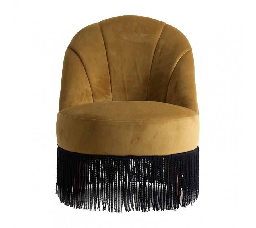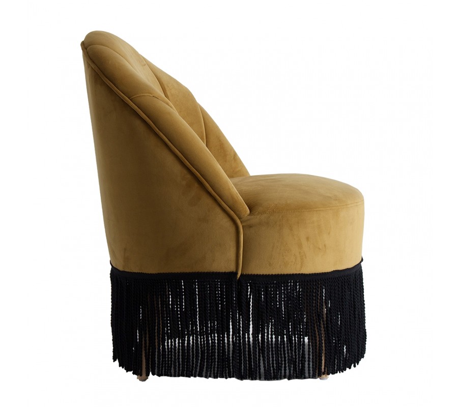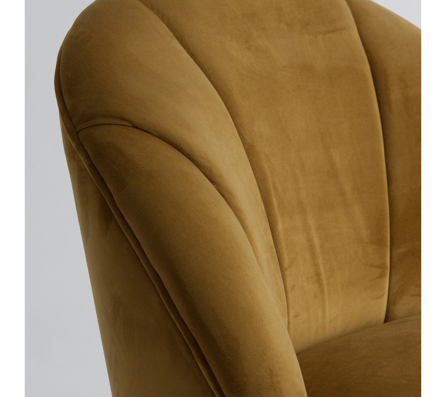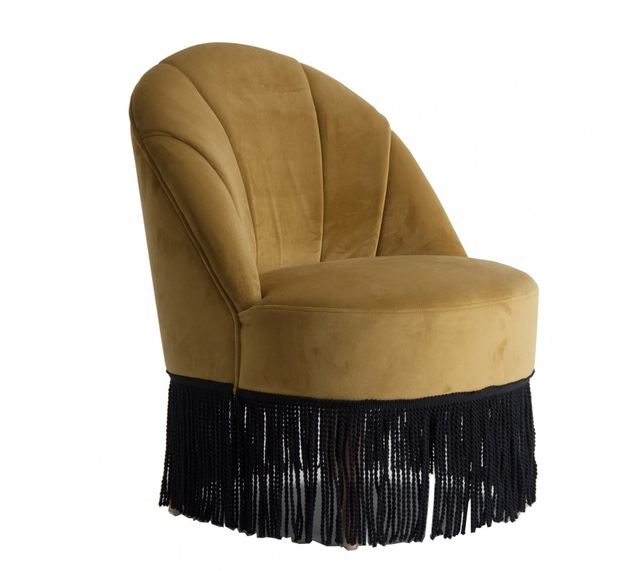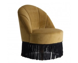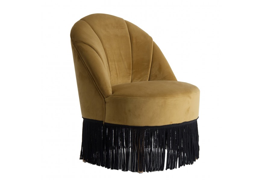 Luxusné Art-deco kreslo Zidow v hnedom horčicovom poťahu zo zamatovej textílie sa vďaka neutrálnemu poťahu veľmi ľahko kombinuje. Štýlové prešívanie na operadle kresla pôsobí elegantným dekoratívnym dojmom, ktorý je podčiarknutý ozdobnými strapcami na spodnej strane sedacej časti v kontrastnom odtieni čiernej. Tento nezameniteľný kúsok sa nestratí ani v priestoroch plných výrazných vzorov a lesklých povrchov v luxusnom Art-deco štýle. Odporúčame ho tiež kombinovať s prvkami z našej rovnomennej kolekcie Zidow v rovnakom štýle a prevedení. Kreslo skvele vynikne umiestnené s kruhovým príručných stolíkom a výraznou lampou v Art-deco štýle.