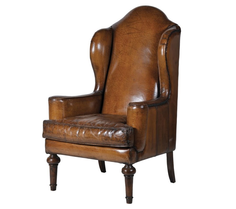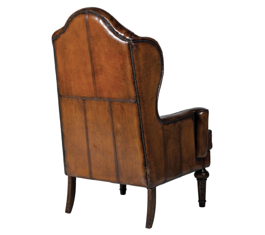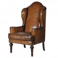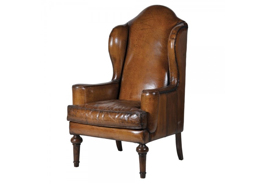 Luxusné vysoké kožené kreslo Belmez II typu ušiak hnedé 135cm