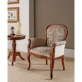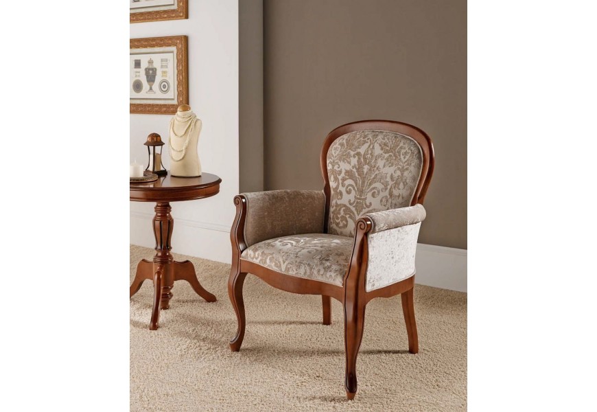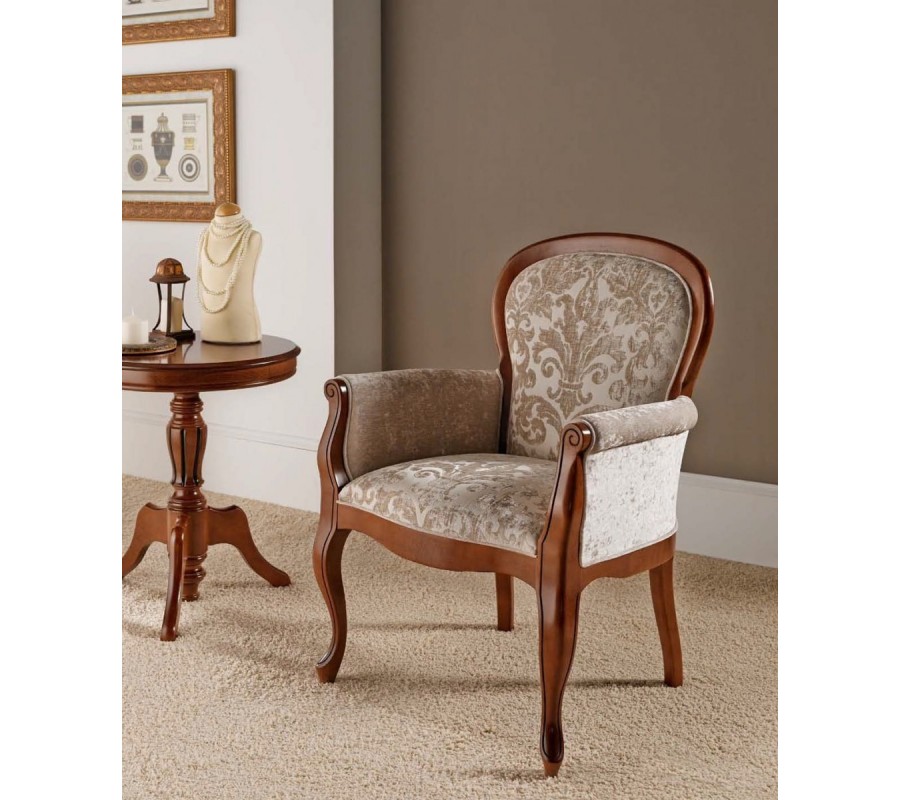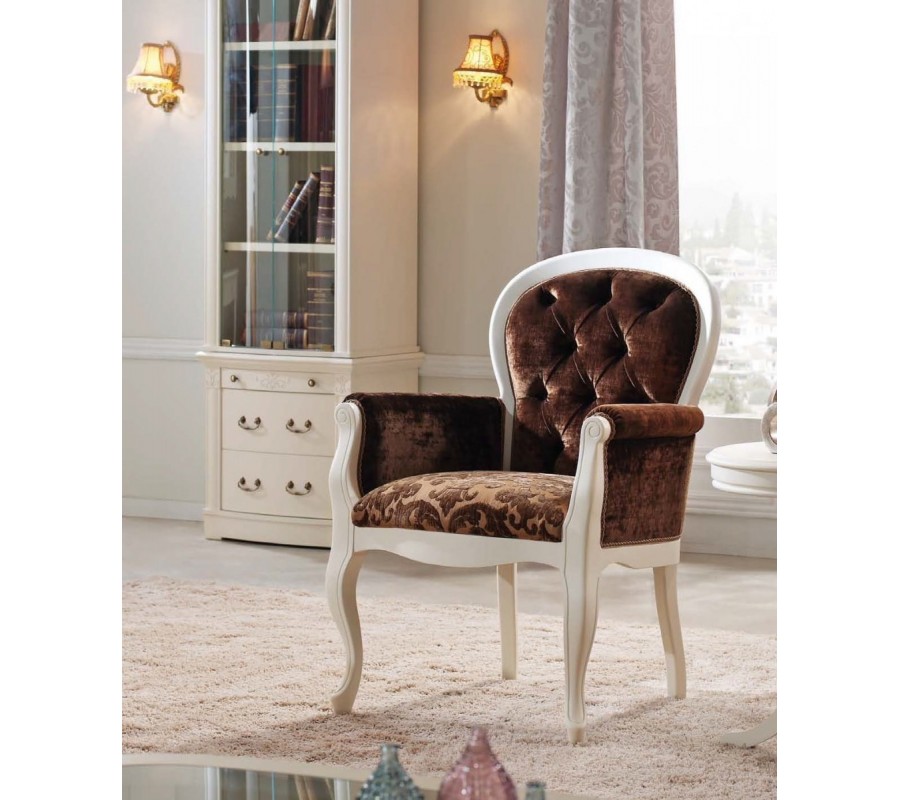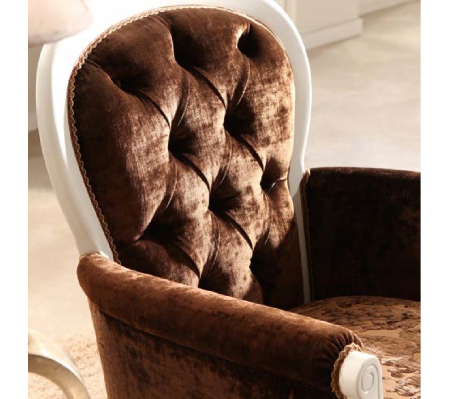 Luxusné klasické kreslo z kolekcie CASTILLA svojim elegantným vzhľadom dokonale zapadne do klasicky a barokovo zariadených interiérov. Kvalitná konštrukcia z masívu bukového dreva zaručí trvácnosť a lesklé zamatové čalúnenie zabezpečí vysoký komfort a luxusný vzhľad. Kreslo má elegantne opracovanú konštrukciu z masívneho dreva, ktorej dominujú oblúkové nožičky pripomínajúce štýl chippendale vyzdobené dizajnovou vyrezávanou líniou, ktorá kopíruje oblúkový tvar nohy. Ozdobná vyrezávaná linka postupne prechádza do opierkovej časti, kde je elegantne zakončená. Čalúnenie kresla možno vyhotoviť v rôznych variantoch podľa vzorkovníka a rovnako ako všetok nábytok tejto kolekcie aj v rôznych farebných prevedeniach dreva. Chrbtová opierka môže byť hladká alebo doplnená prešívaním s gombíkmi.
